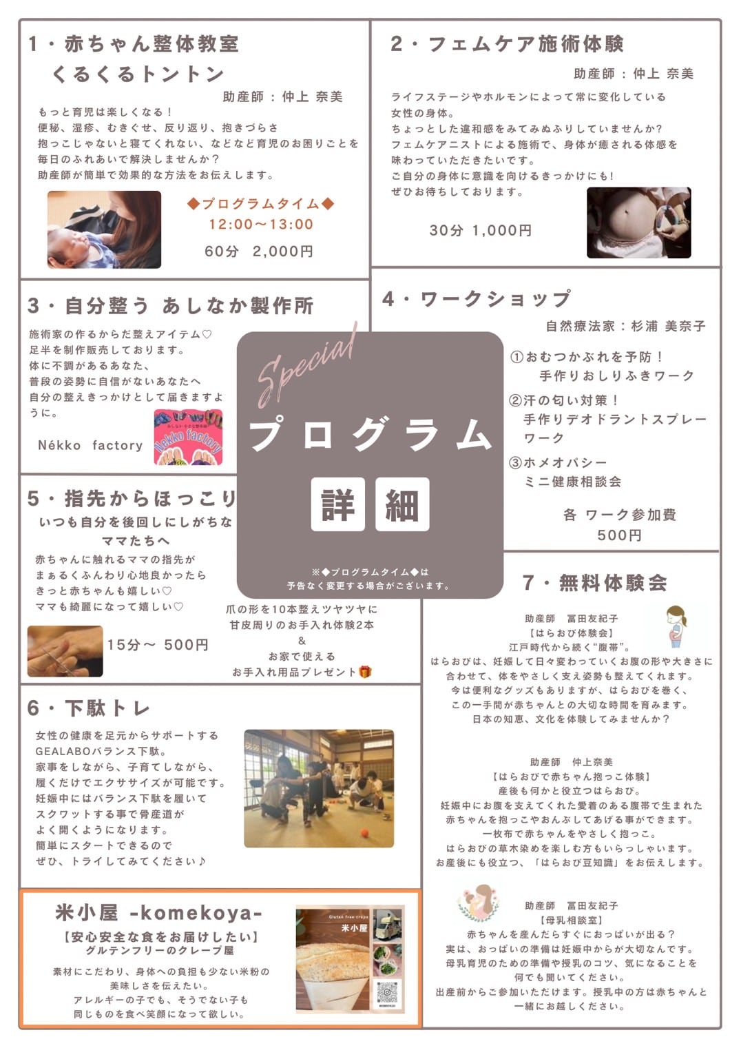 産前産後のママさんをはじめこれから妊娠を検討している方や子育て中のママさん、身体の不調を感じている方も含め、男女問わず誰でも参加でき楽しむことが出来るような内容です。