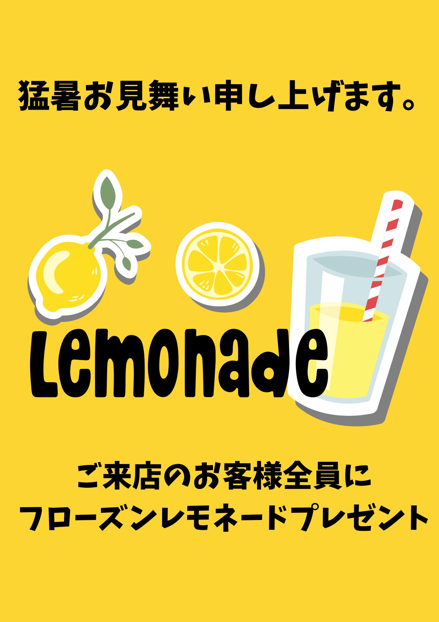 先日の土曜日は来店者全員にフローズンレモネードプレゼントをしました。