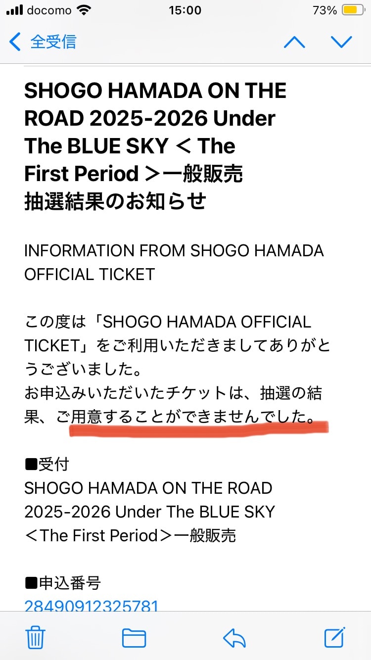 浜田省吾さんのLIVE、1987年以来に申し込んだ。