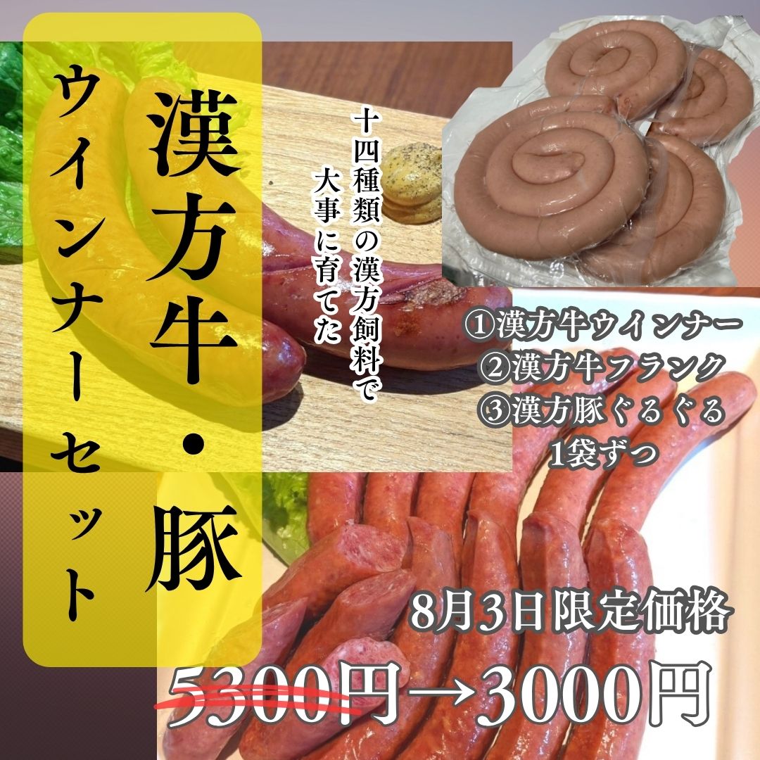 幸之助の日8月3日限定 特製 漢方牛・豚ウインナーセット各種1袋ずつ(冷凍)