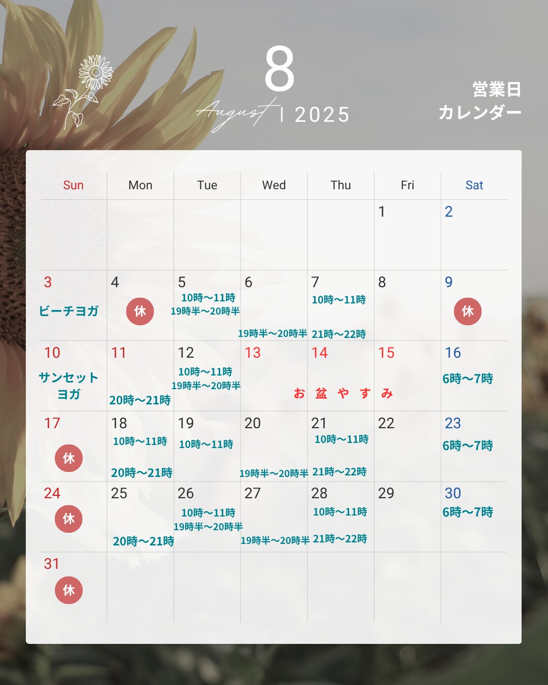8月のスケジュール🗓️をお知らせいたします☆