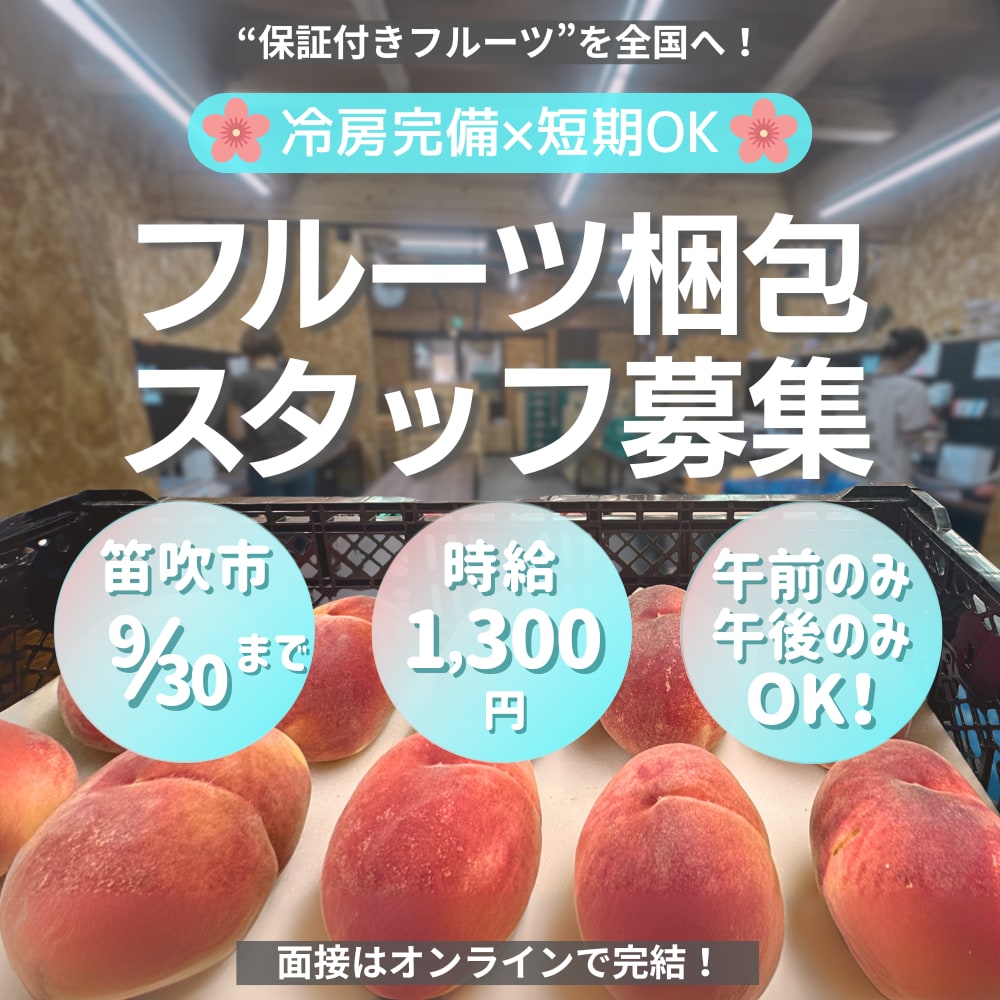 【MamCafe】8〜9月限定!果物出荷スタッフ募集🍑時給1,300円 vol.915