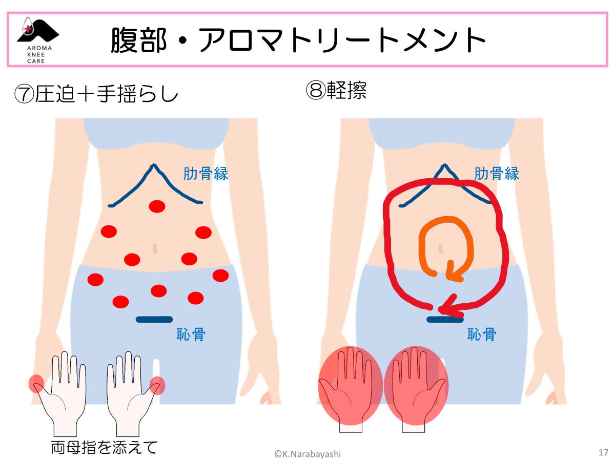 そして、お腹をアロママッサージ。