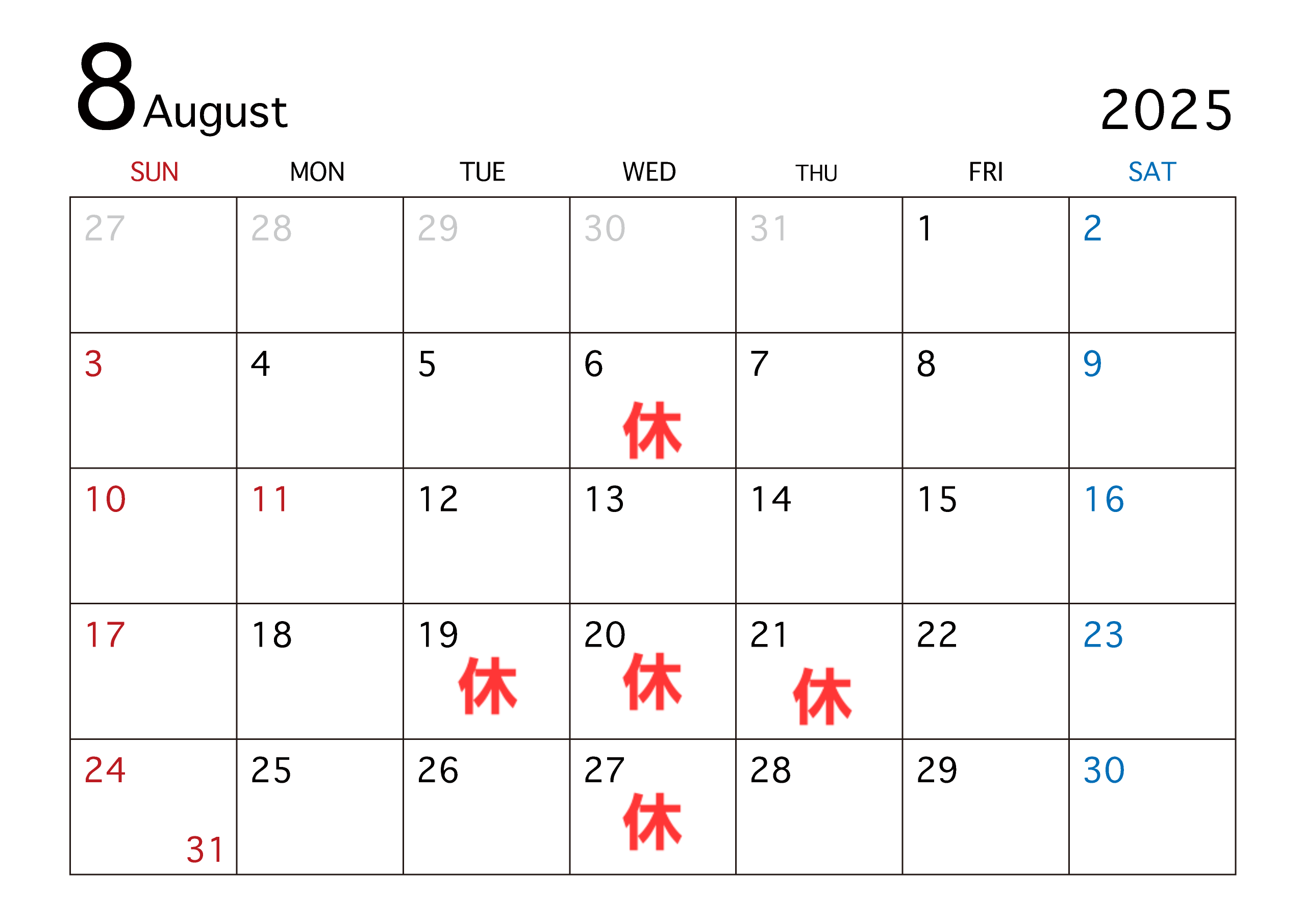 休みのお知らせです。