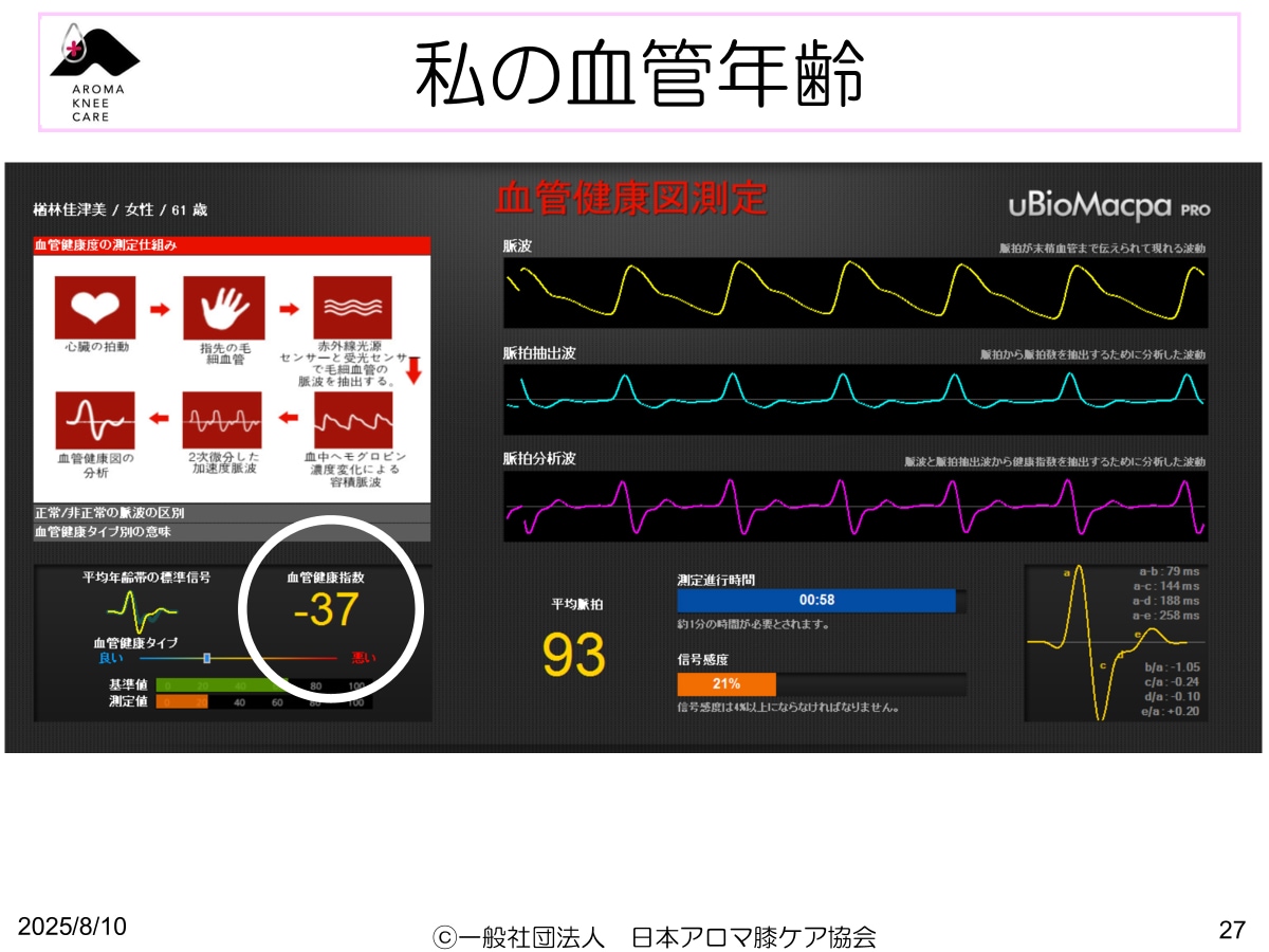 目を疑いますが、他の方は一般的な血管年齢だったので、