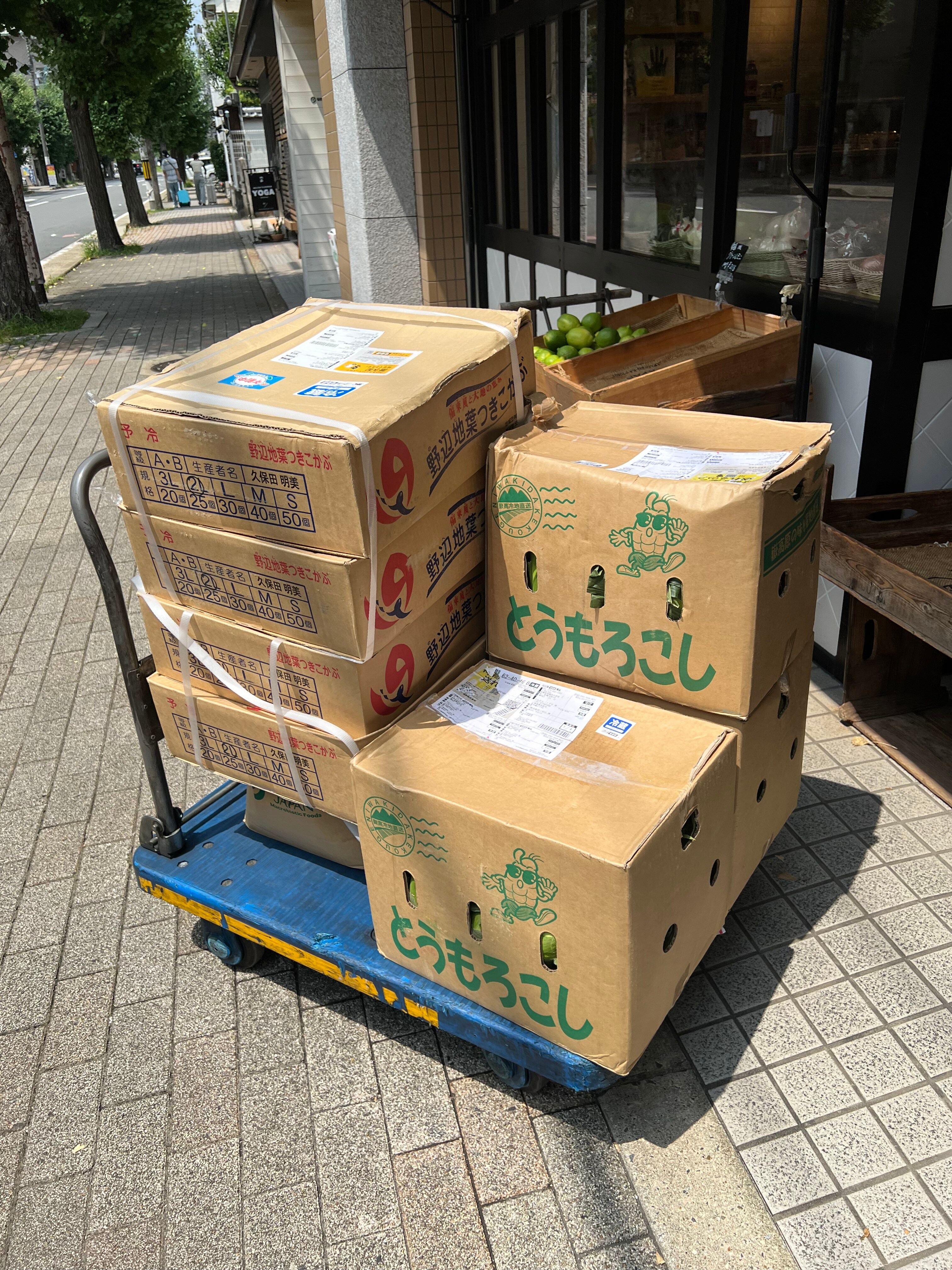 今日も続々と野菜や果物が到着しました。