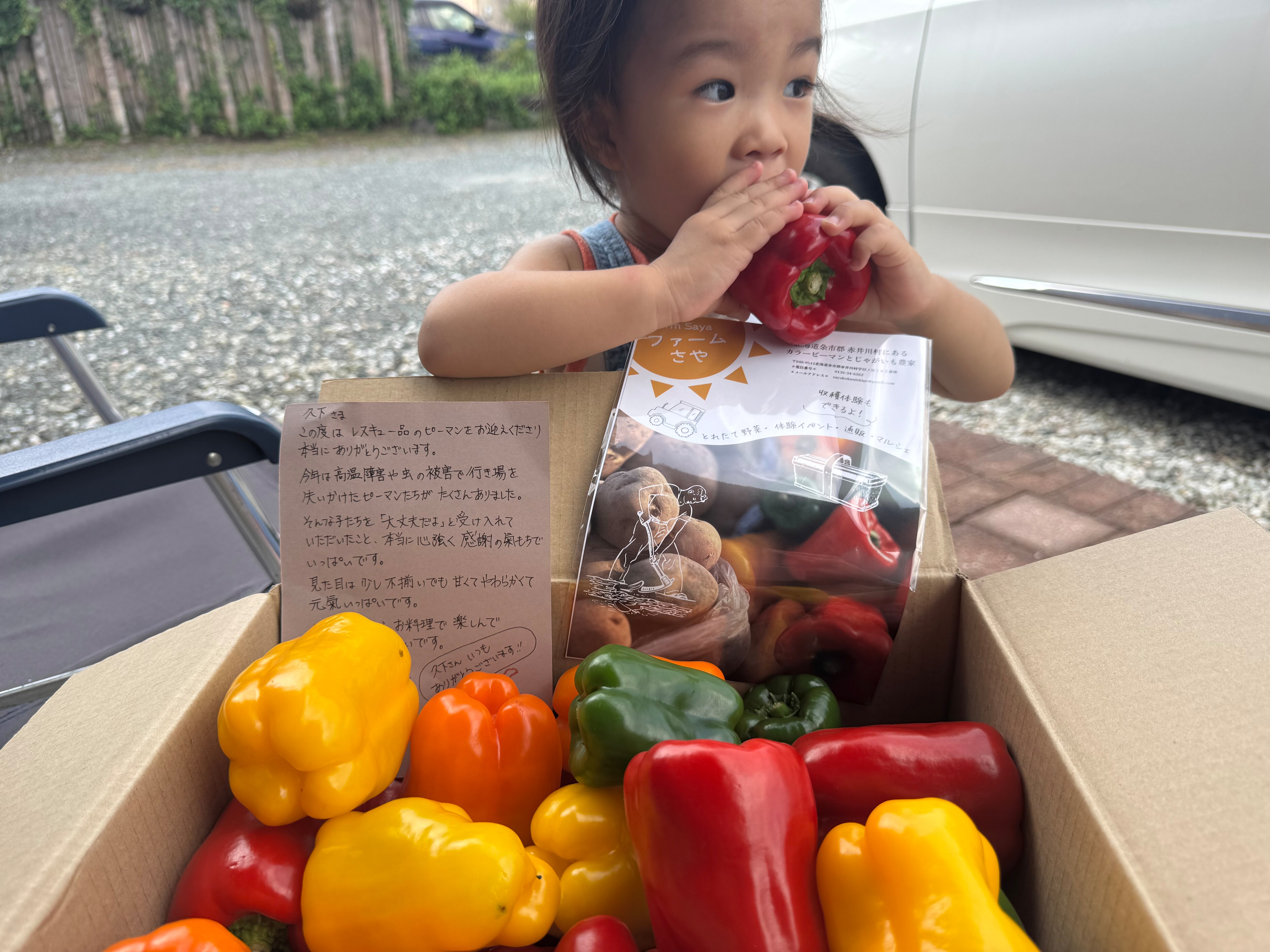 さやさんはすっごく立派なカラーピーマンを作られています。北海道小樽のコーヒーロースト小樽さんに寄った時にさやさんのカラーピーマンをいただきました。そのカラーピーマンを口にしてから赤井川村に行きたくなり小樽から赤井川村へ、さやさんのファームに寄らせていただきました。さやさんとはお会いできませんでしたが大自然の北海道、更に更に大自然を感じられる赤井川村を感じた時、この大自然の環境がこのカラーピーマンを育ててるんだなぁと感じました。