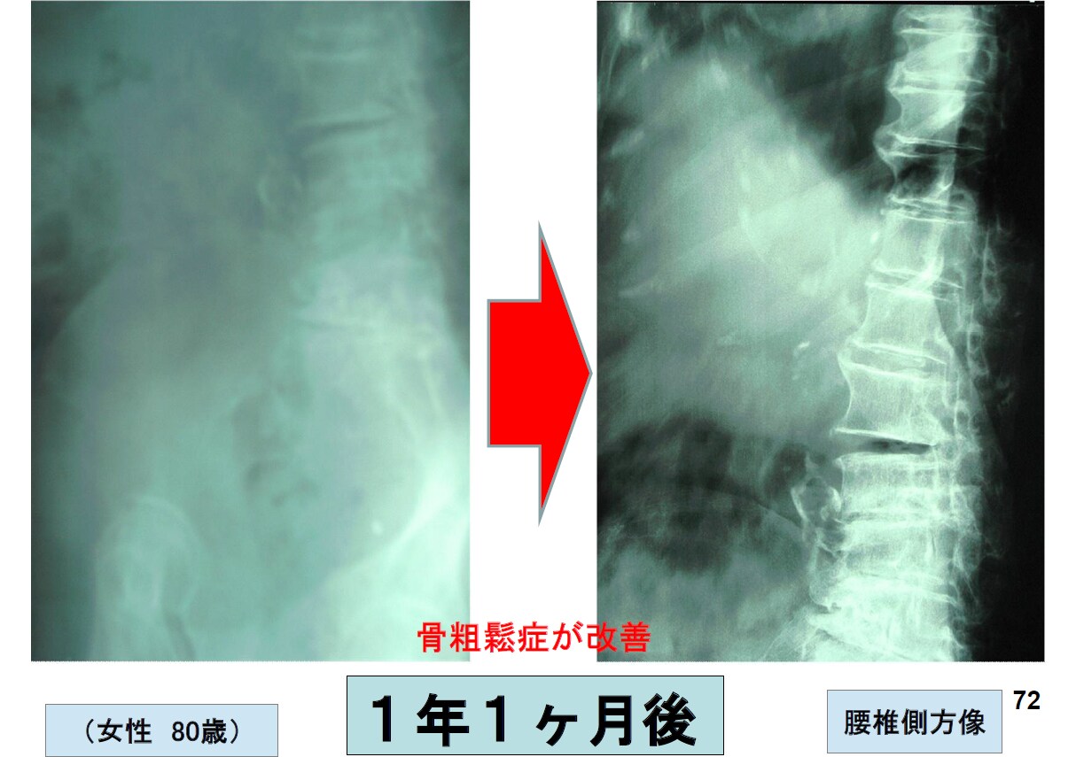 骨粗しょう症や、脊柱管狭窄が改善している事例など