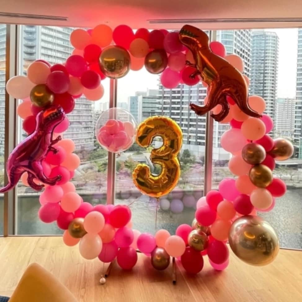 🦕【恐竜とピンクで囲む3歳のお祝い】