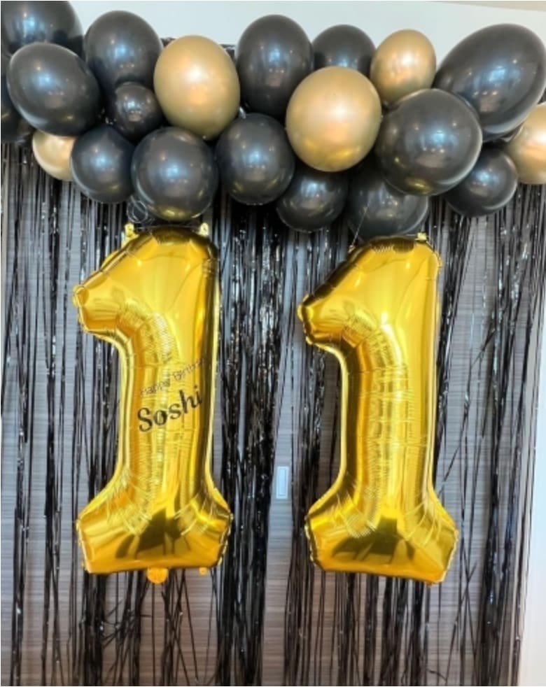 数字バルーンとモノトーンの組み合わせで、かっこいい空間に✨