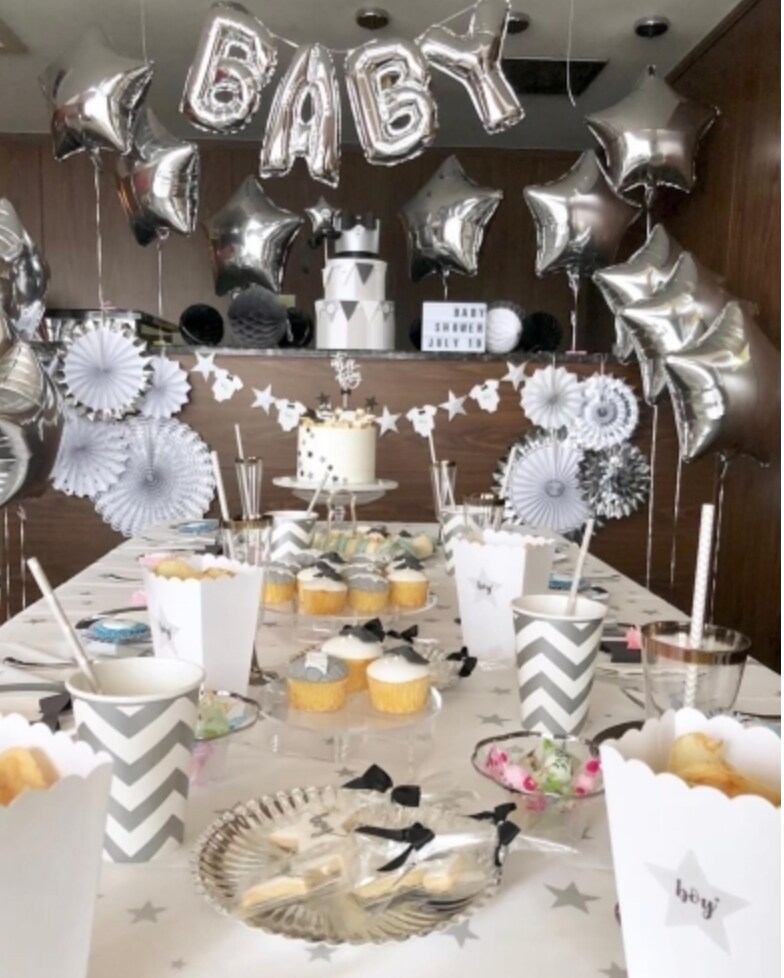 👶【モノトーン×シルバーで叶える、男の子のベビーシャワー】