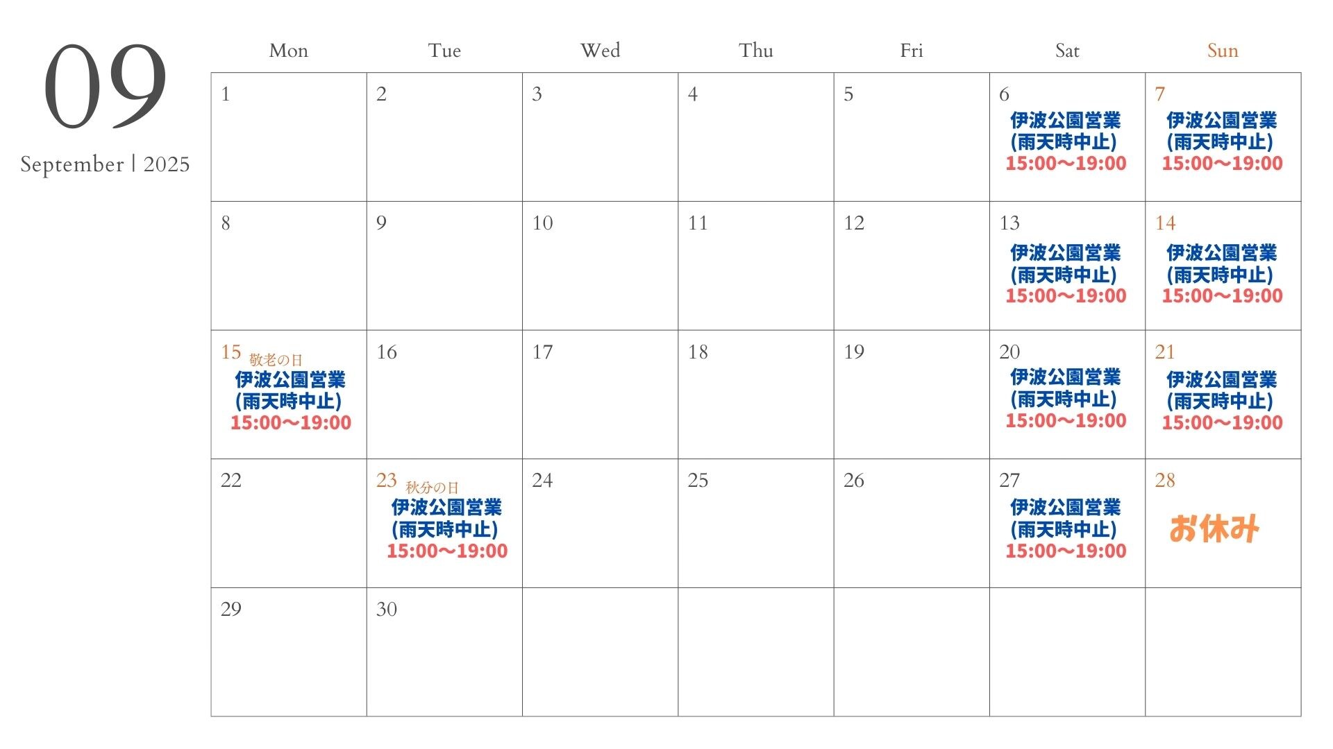 本日は9月のキッチンカー出店スケジュールのお知らせです。