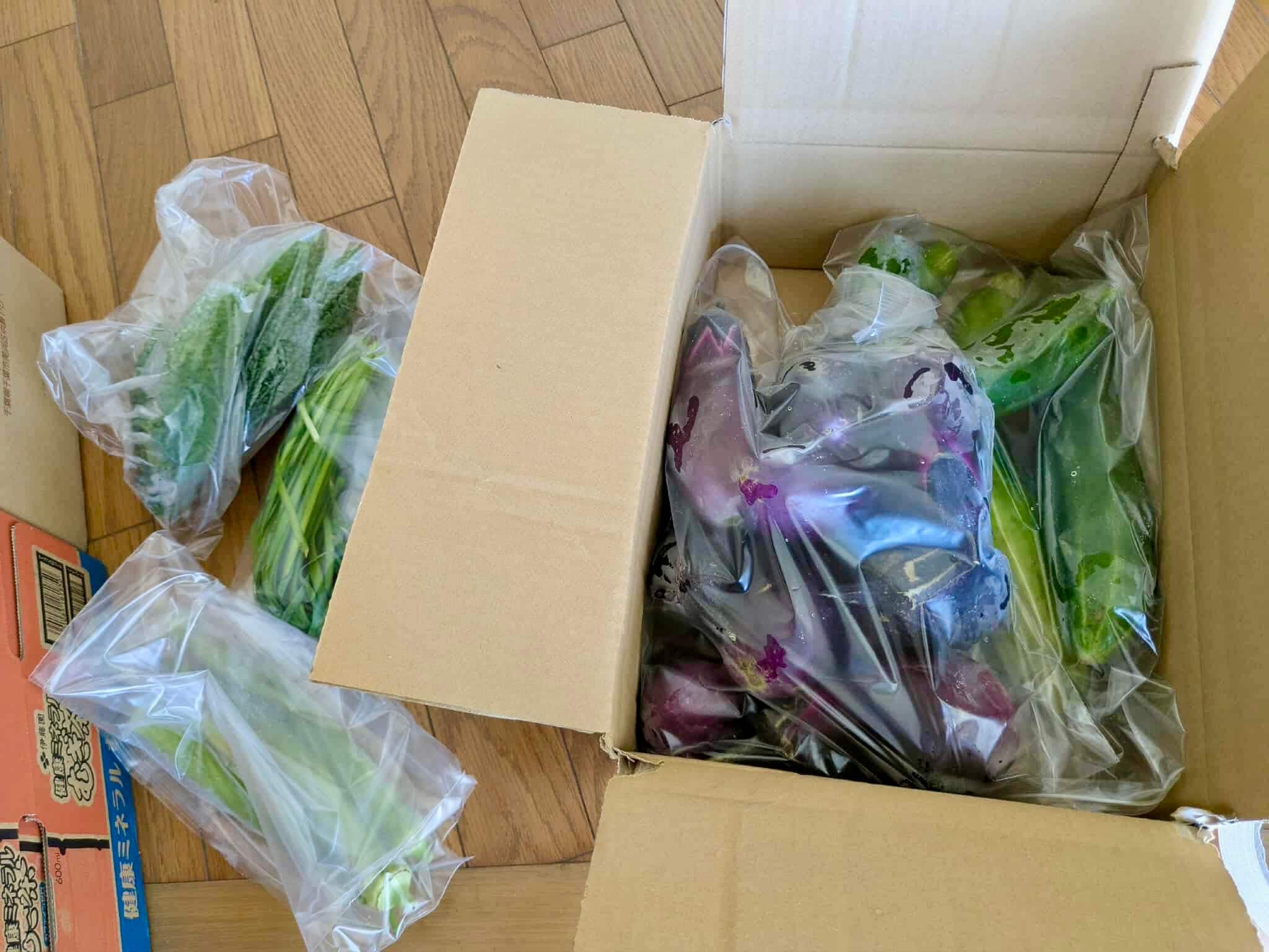 茄子、キュウリ、ニラ、ゴーヤ、オクラを送っていただけたようです。