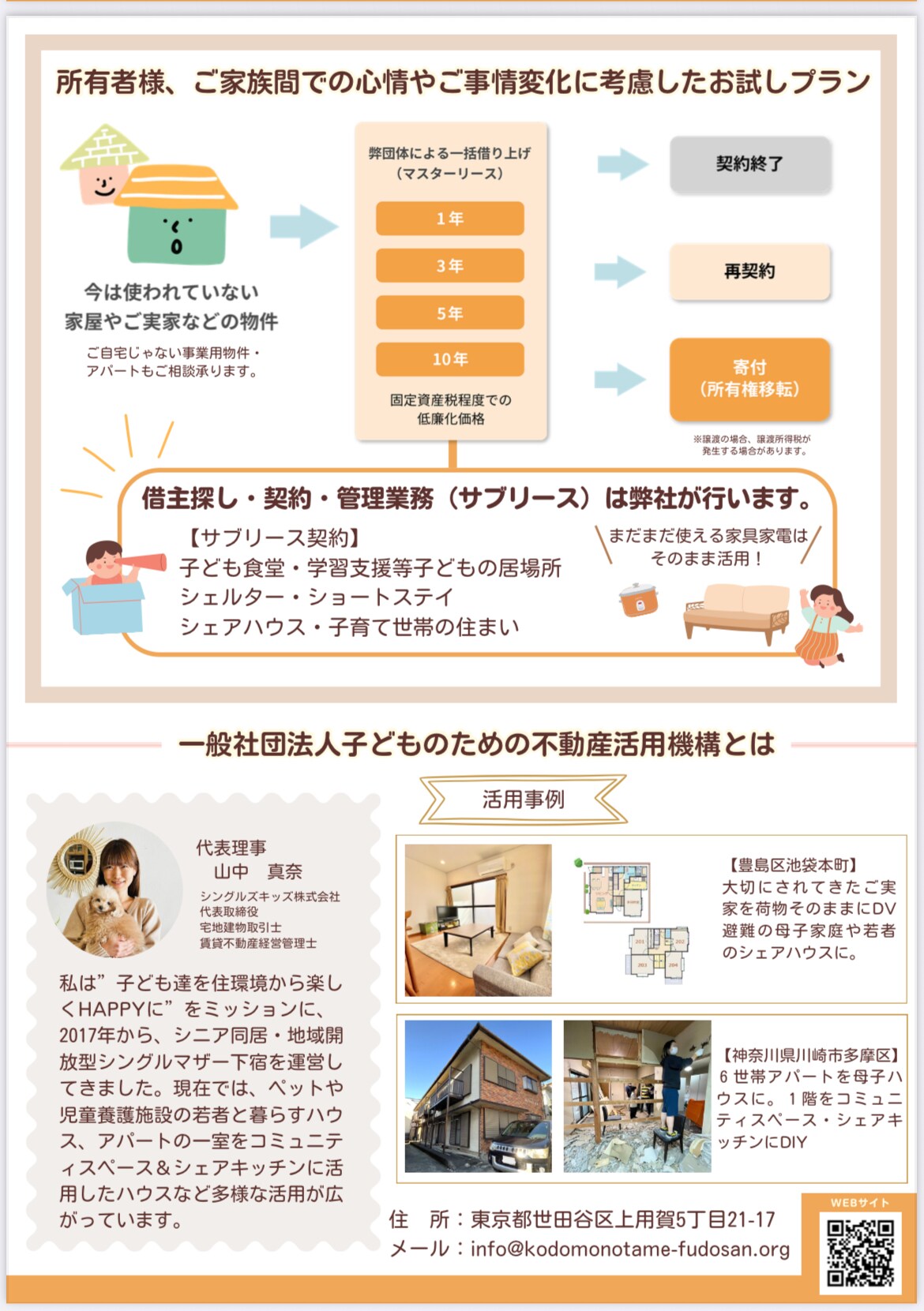 それを、こちらの「子どものための不動産活用機構」では、荷物はそのままで、空いているスペースをお借りする形式でもご対応いただけるのです。