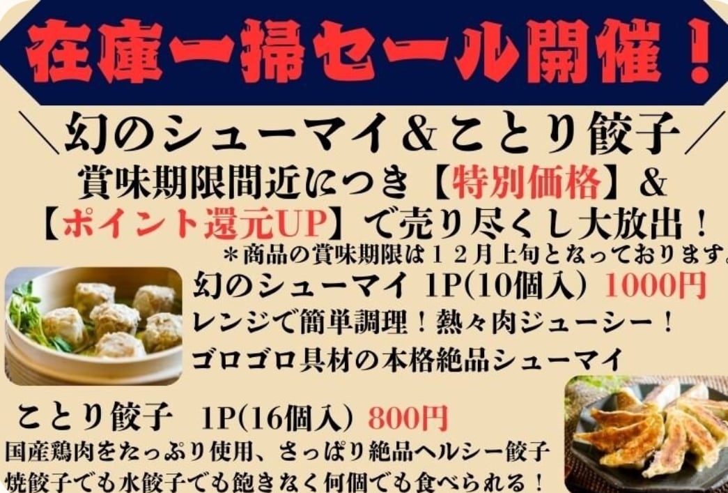【在庫一掃🥟×フードロス協力🙏】“幻のシューマイ&ことり餃子”が今だけ特価!(園食堂さん応援)