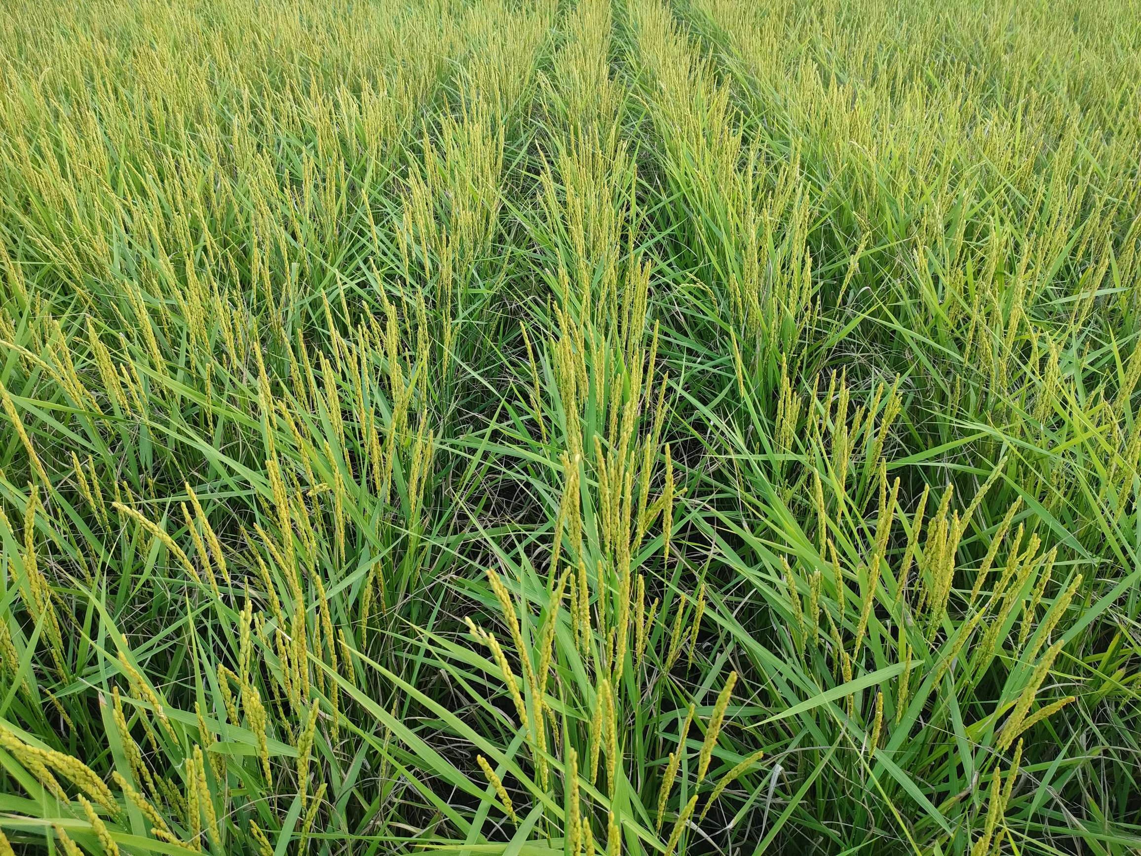 ところは少し遅れて出穂して緑色。