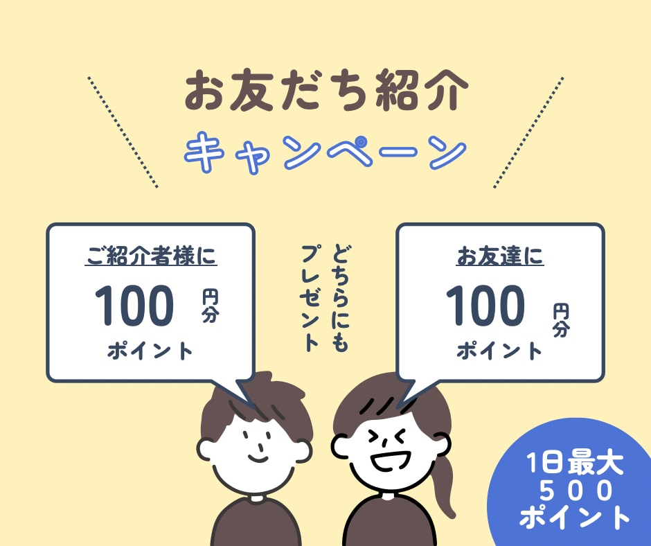 ツクツク!!!がはじめてのお友達を招待するとお互いに100ポイント貯まります!