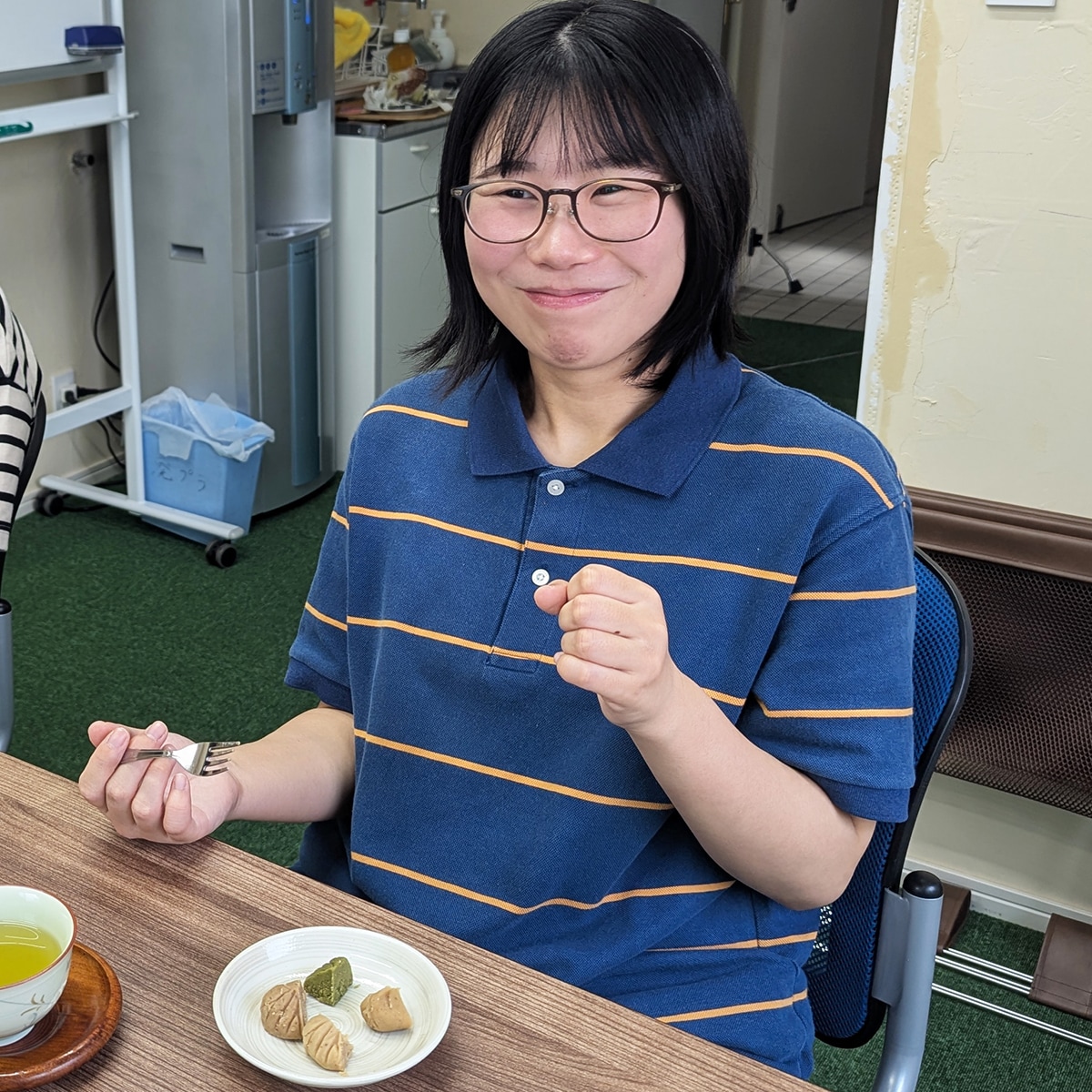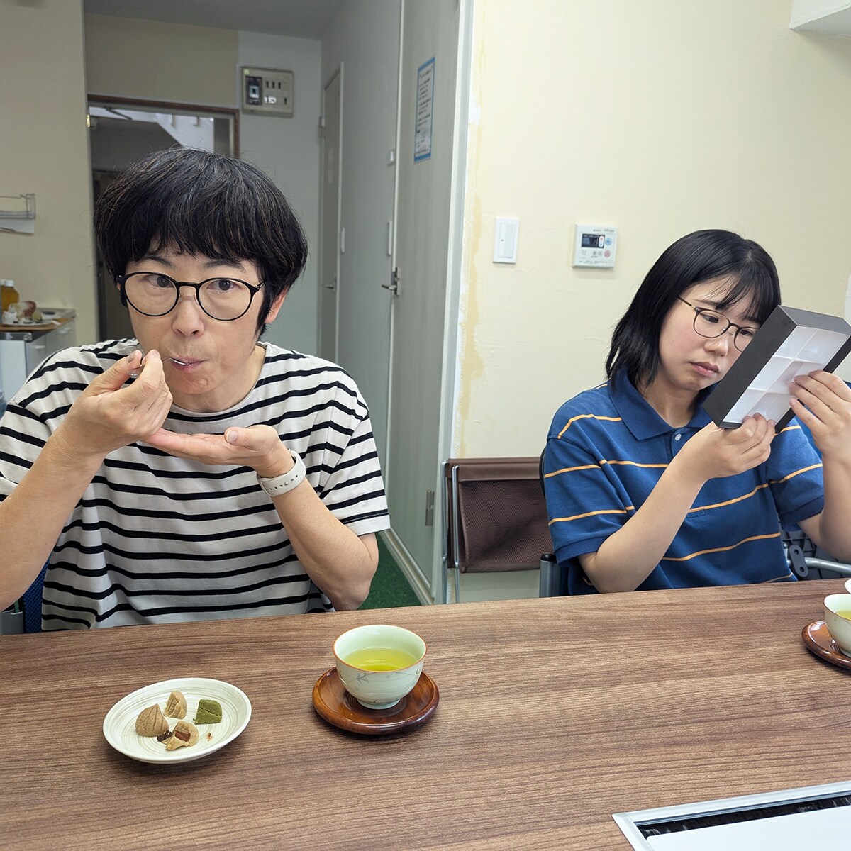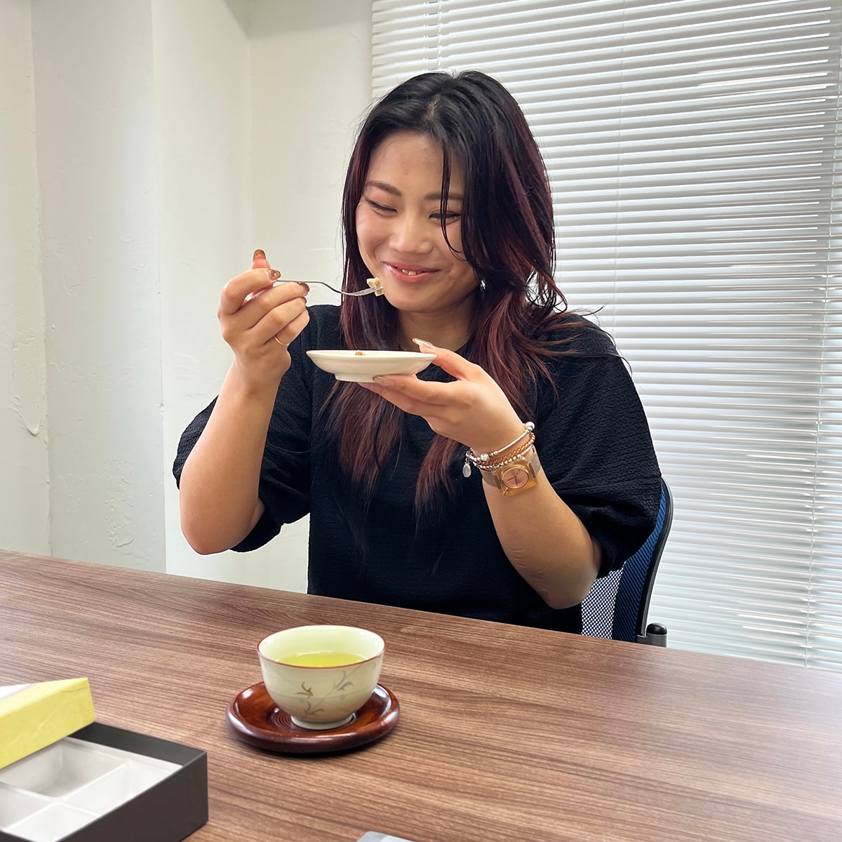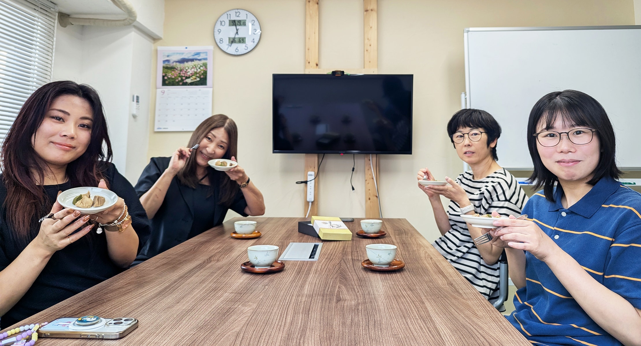仕事の合間にホッと一息。栗きんとんをいただきながら、おしゃべりが弾みました。