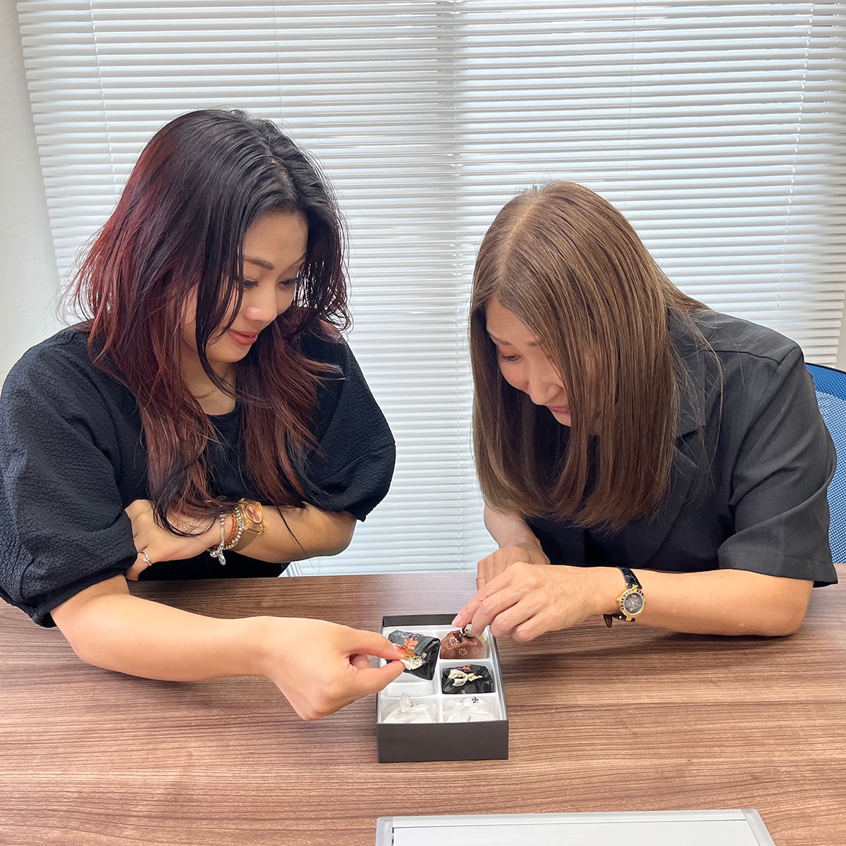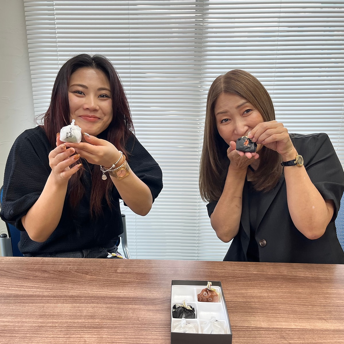 「4種類あるの、嬉しいな~、どれから食べる?」と興味津々な広報・鈴木とプランナー・玉島。