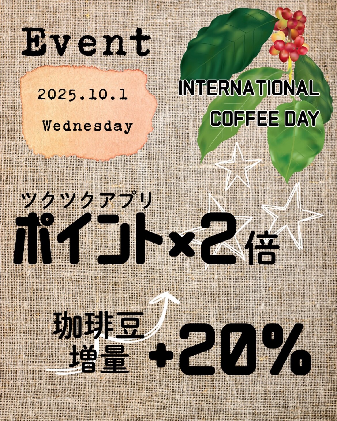 ②コーヒー豆20%増量します!