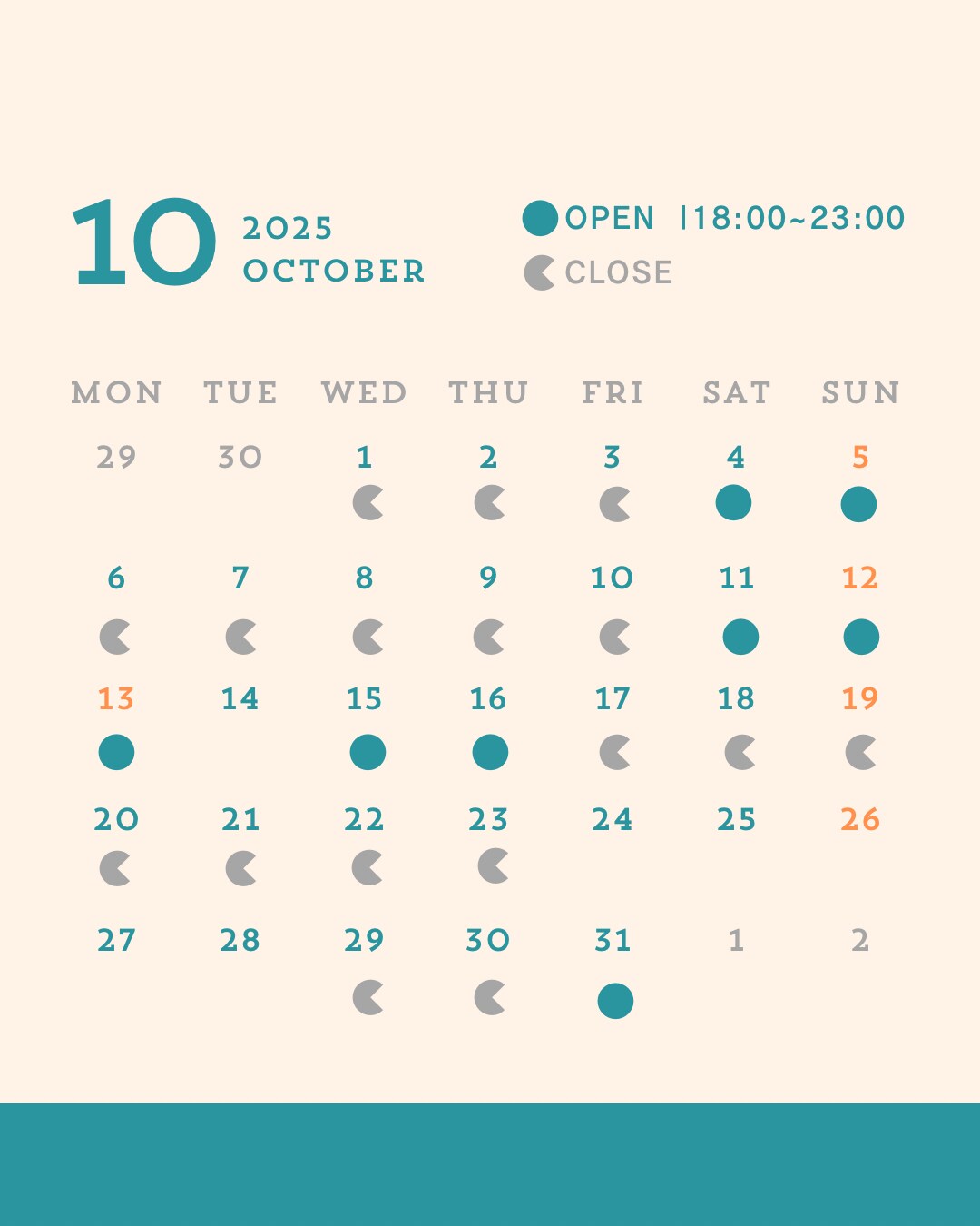 10月の営業予定