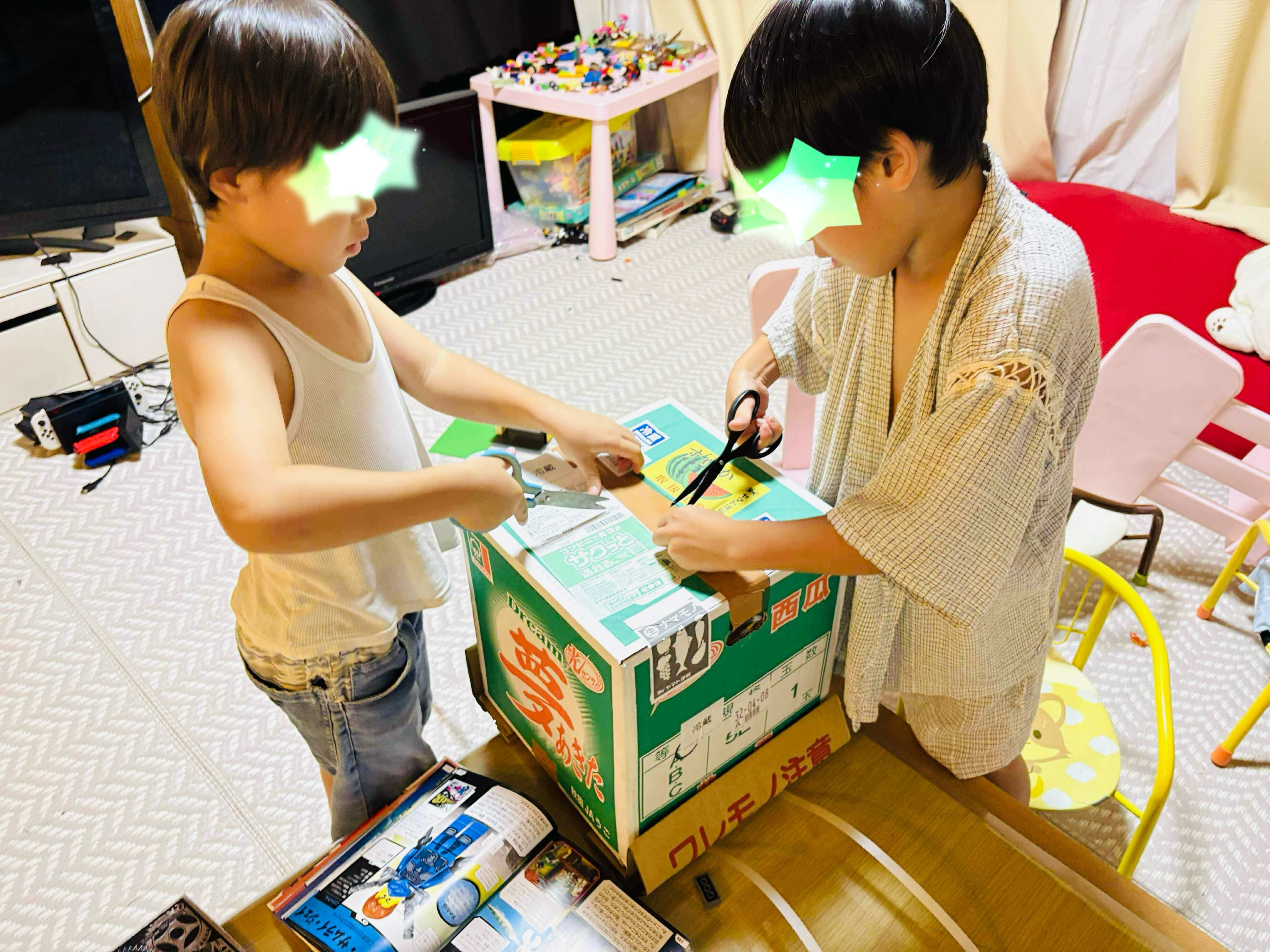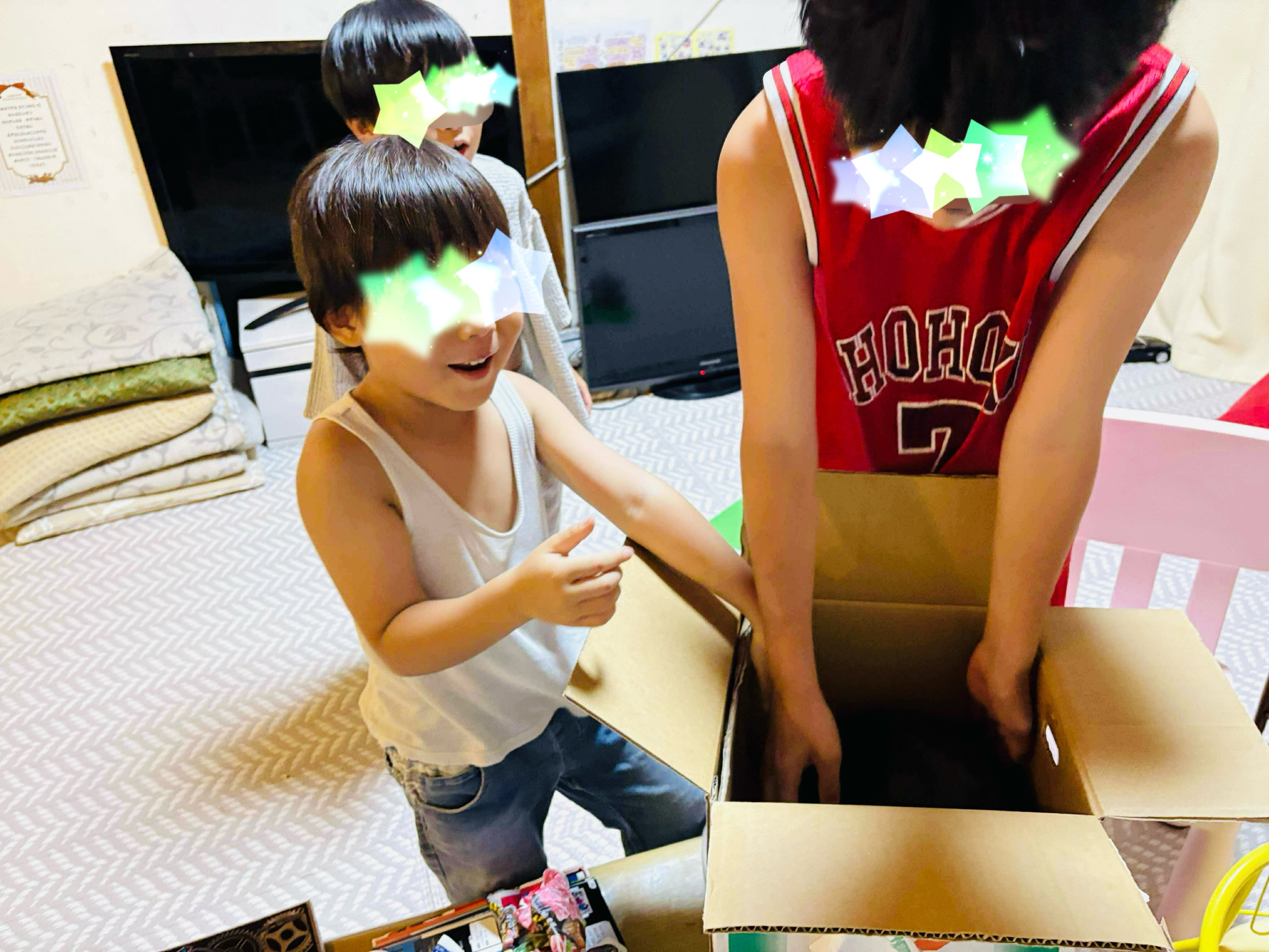 子ども達が、いそいそと皆で運んでワクワクしながら開封したようです。