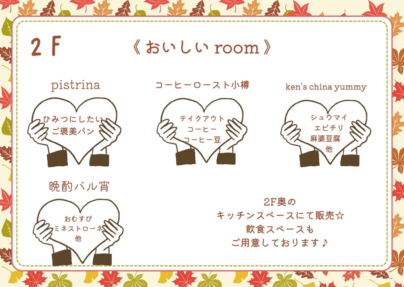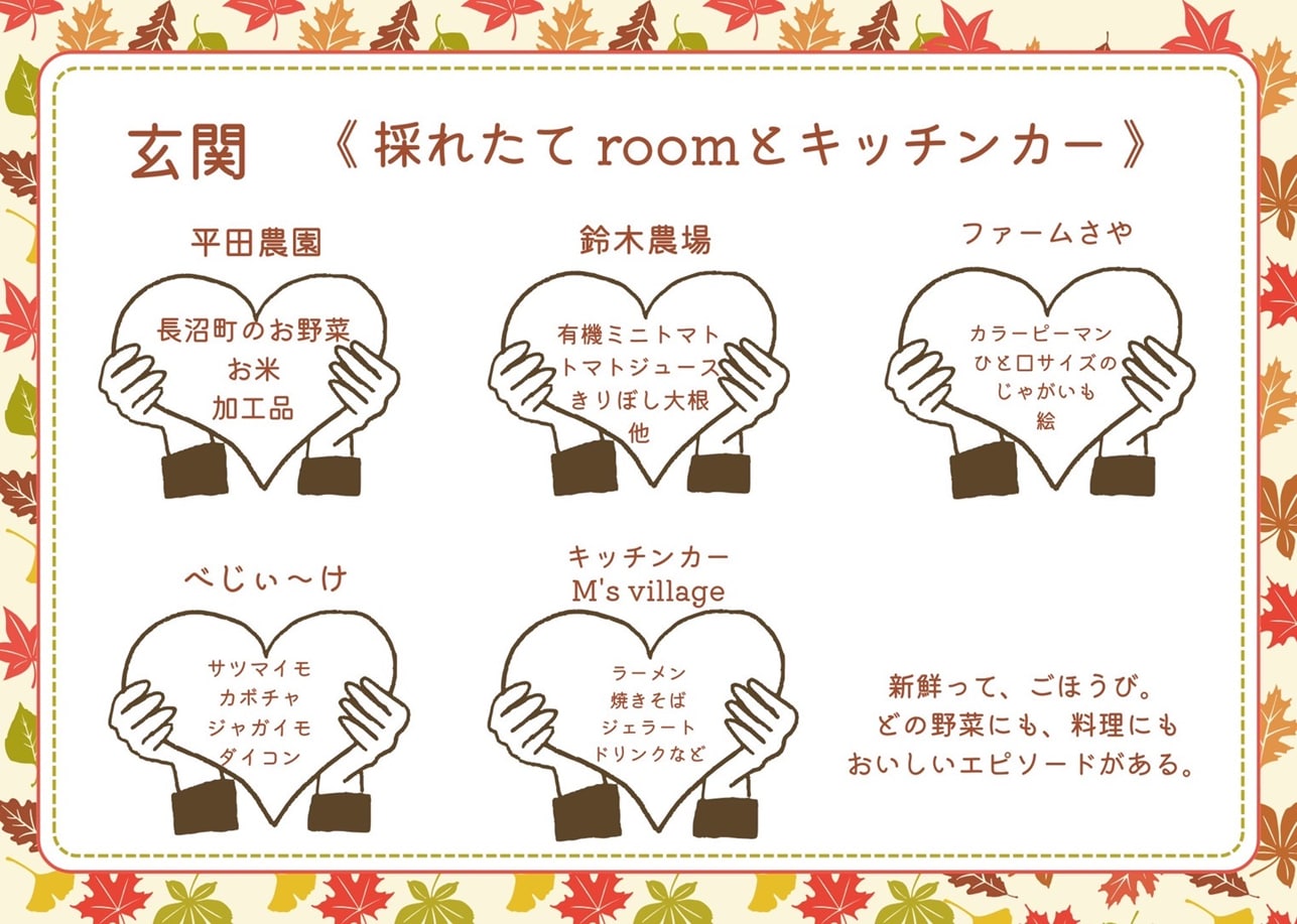 新鮮なお野菜やこだわりのパン、コーヒー、雑貨の販売、軽食、整体、セラピストなど色々なお店が出店します。