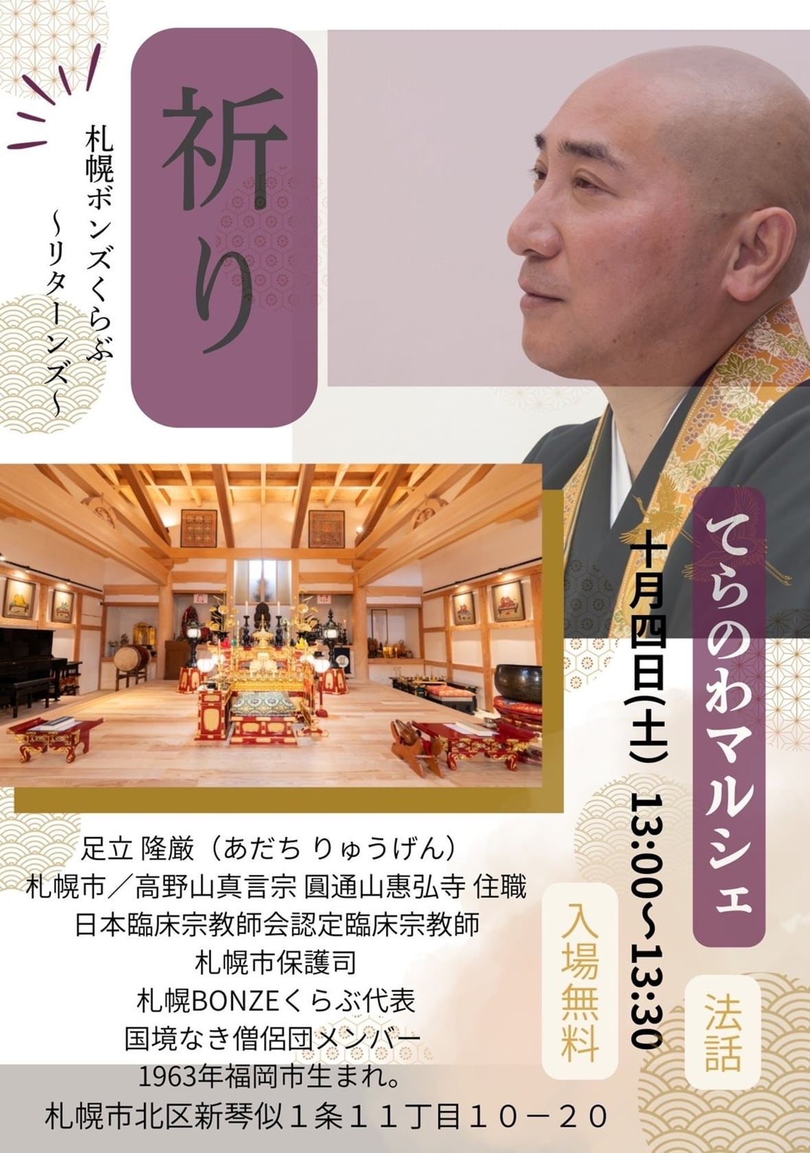 そして【てらのわマルシェ】ならではの、惠弘寺の足立住職の法話を聞くことが出来ます!