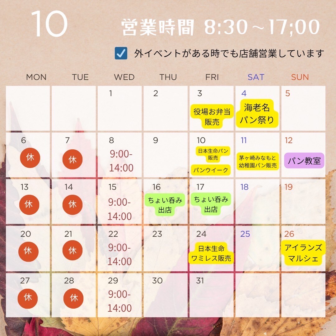さて10月のスケジュールです