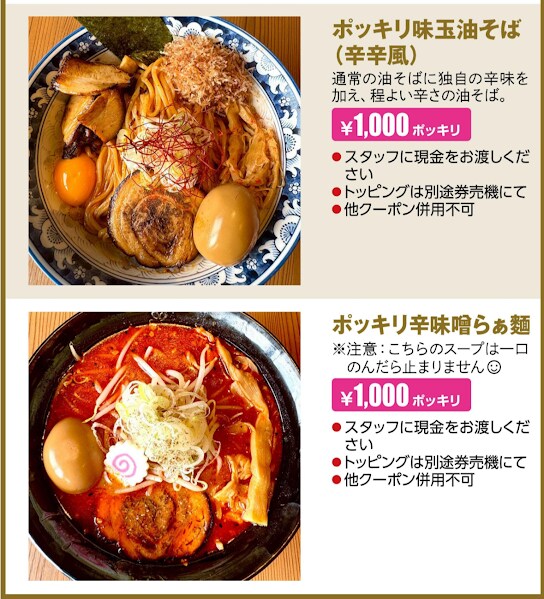 (※ポキパスの限定ラーメンは他クーポンとの併用は不可とさせていただきます。【ただし、ツクツク!!!のサービスのみ可】予めご了承下さい。)