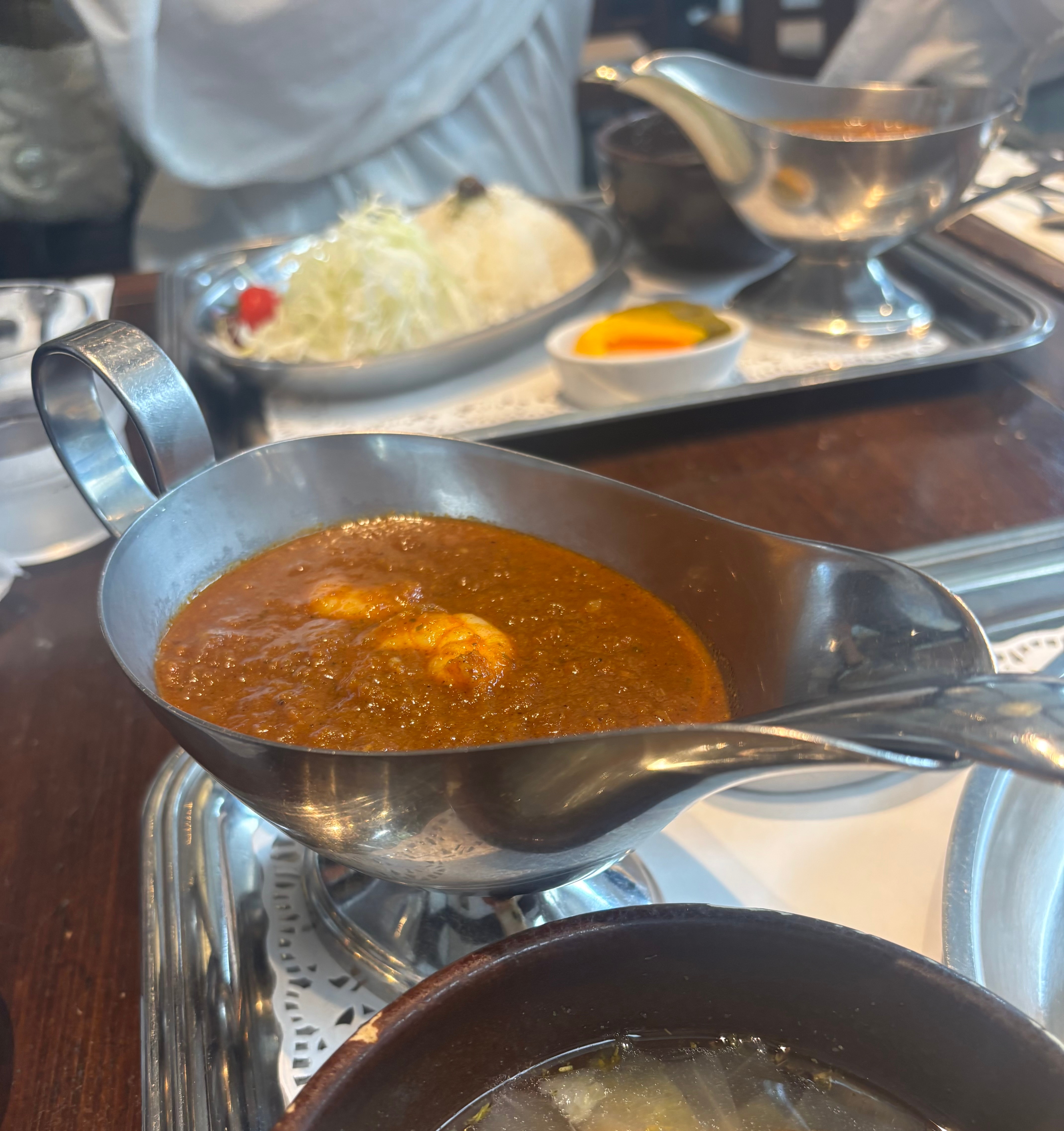 オーダーは、3人とも看板メニュー、次郎の好きだったシンガポール風のエビカレー。