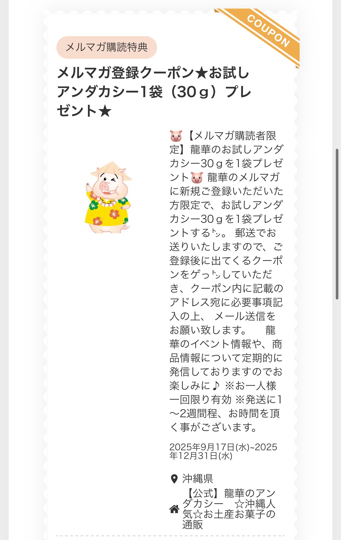 ↓ ↓龍華のメルマガを登録いただくと、メルマガ購読特典のクーポンが表示されます ↓ ↓