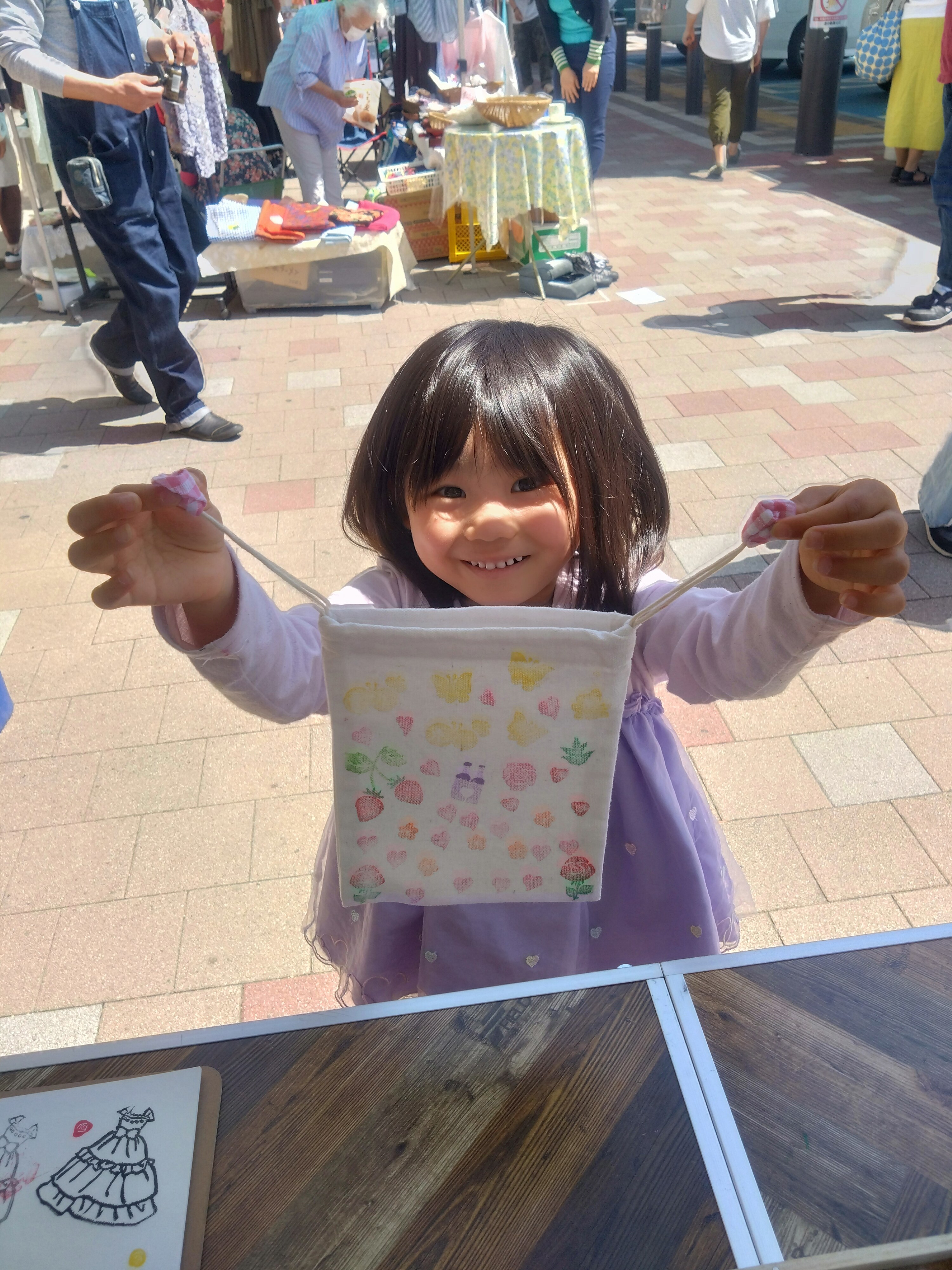巾着・トートバック・コースター等に好きなだけけしごむはんこをペタペタ押して、