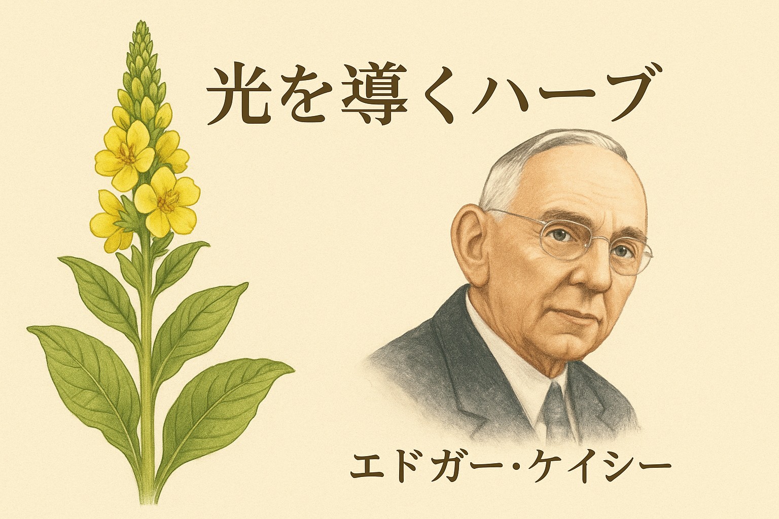 静かな修道院の庭。柔らかな朝の光の中に、金色の穂をまっすぐ天へ伸ばすハーブがあります。それが ミュレイン(ビロードモウズイカ Verbascum thapsus)。古代から「魂のトーチ(Torch of the Soul)」と呼ばれ、呼吸器を整えるハーブとして愛されている野に咲く草花です。中世修道院医学では、ヒルデガルトはこれを「呼吸の炎を整える植物」と記し、19世紀、エドガー・ケイシーは「身体の波動を整える自然の導き手」として透視リーディングで、前述したように繰り返し紹介しています。