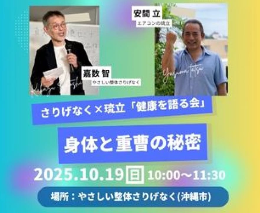 エアコン洗浄のシゴトをしている友人、安間立さんと真実を探求する整体師の嘉数が話します。