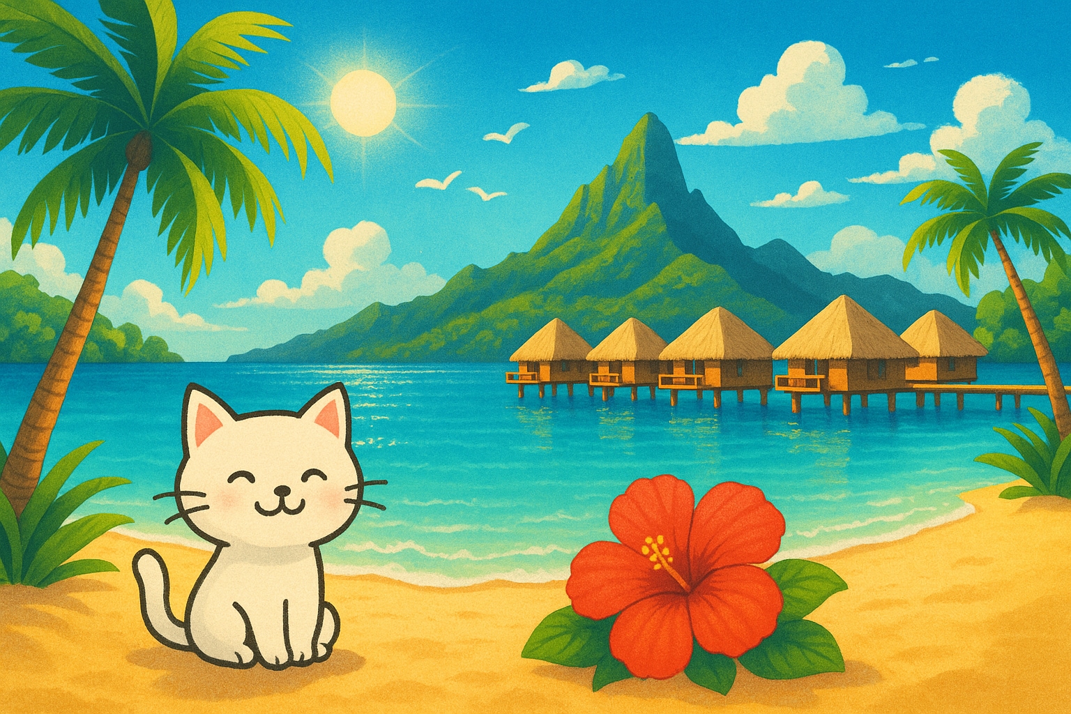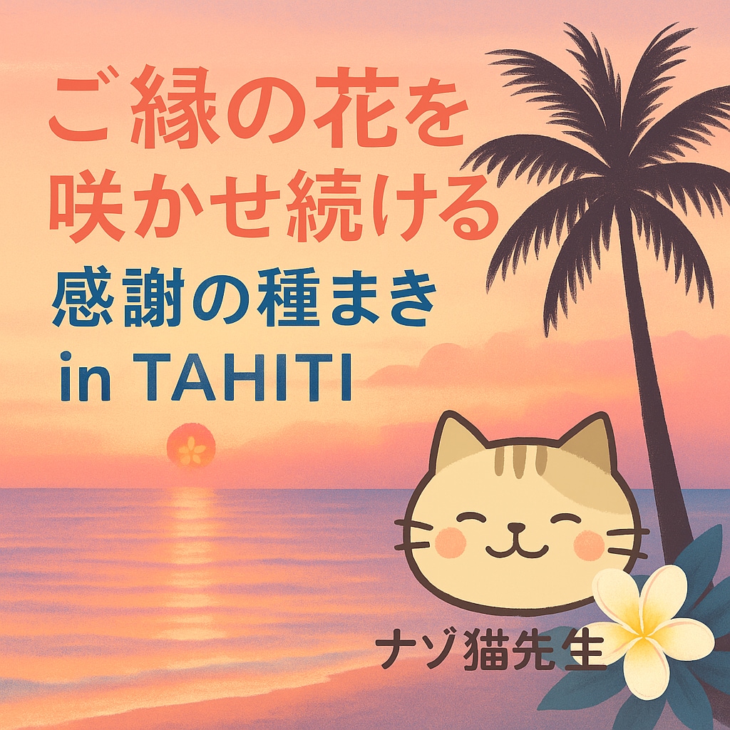 タヒチの風も、感謝の香りで吹くニャ〜🐚✨」