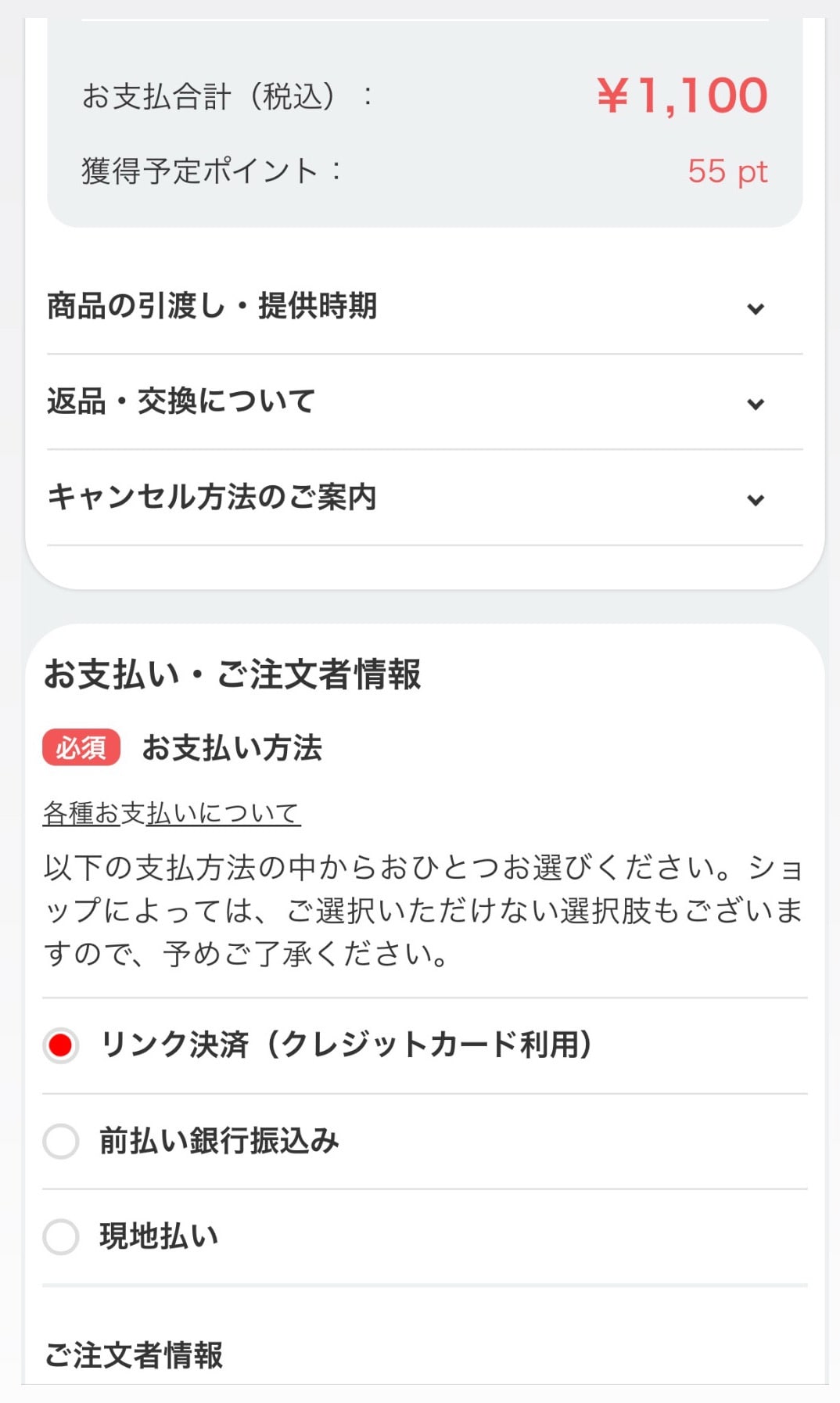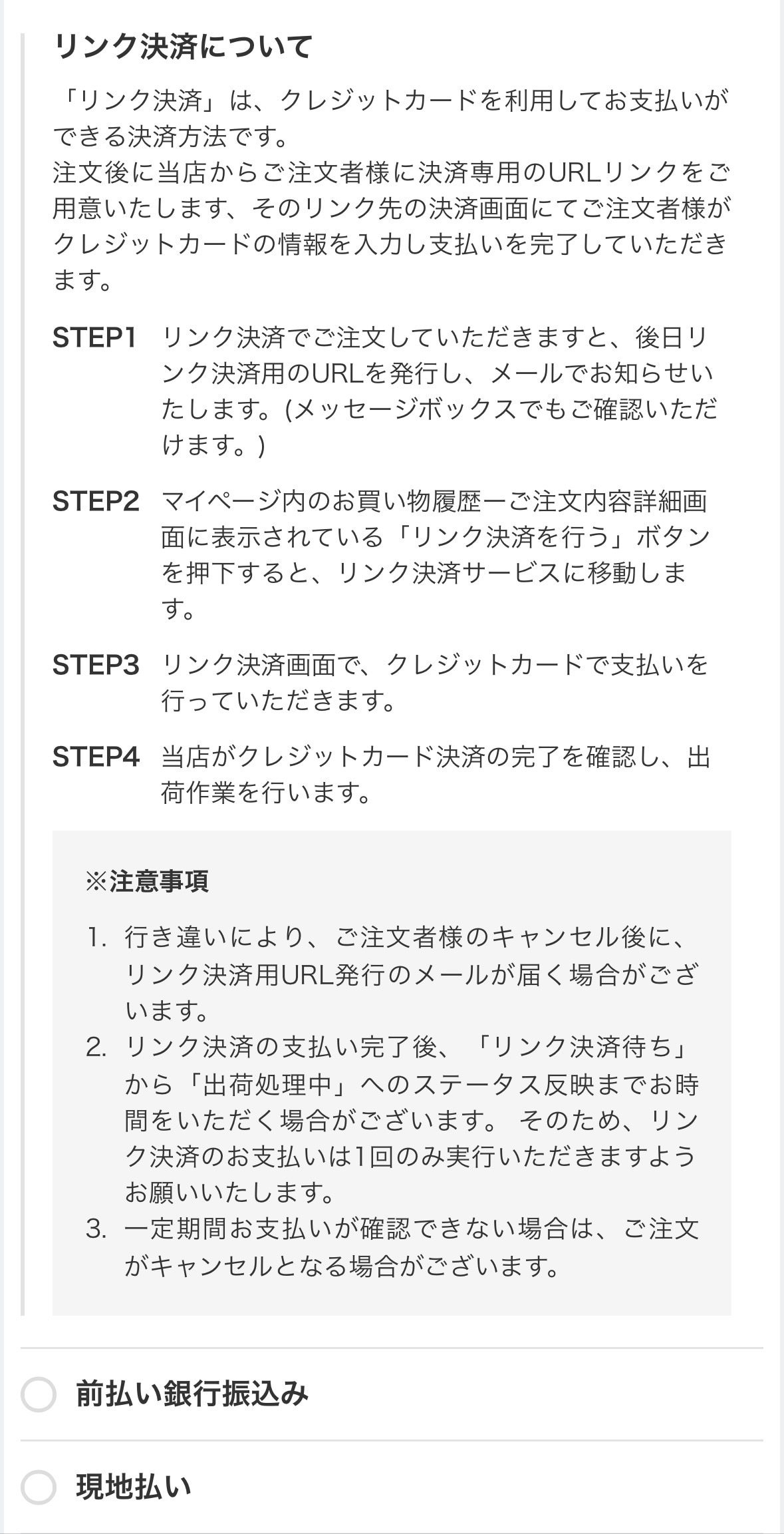② ご購入手続き画面で「リンク決済」を選択いただきます。