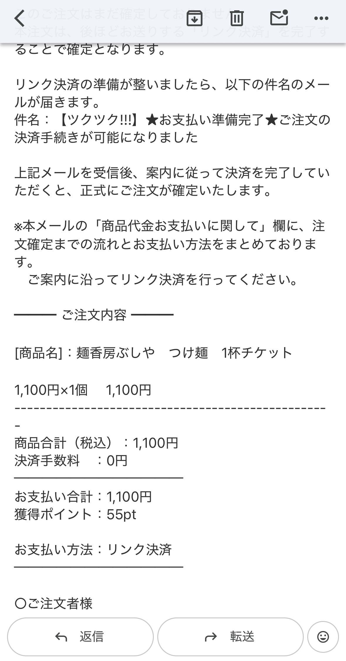 麺香房ぶしやでは「リンク決済」機能を導入し、クレジットカード決済ができるように設定しました。