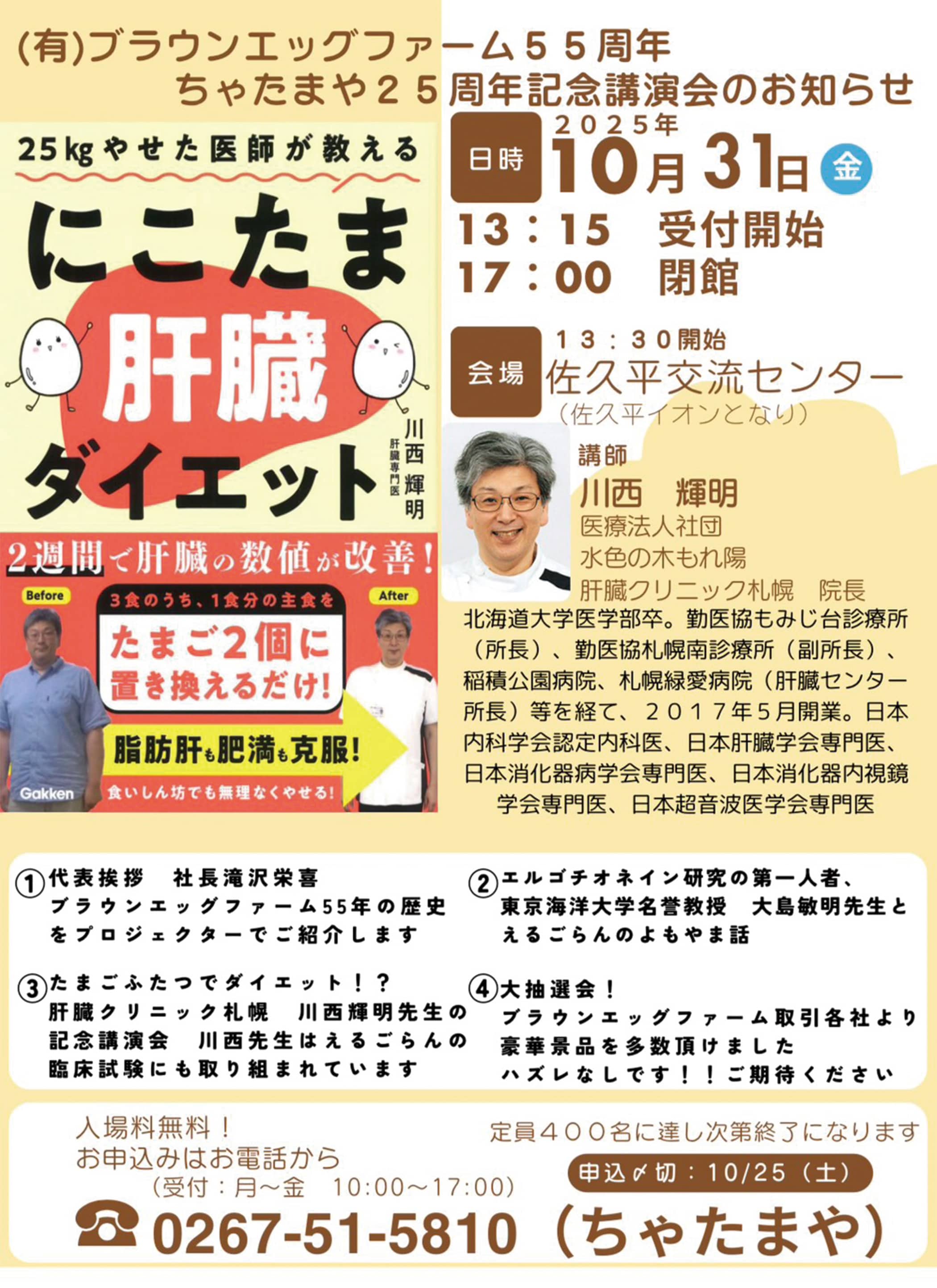 10月31日(金)【ちゃたまや25周年記念講演会】!!