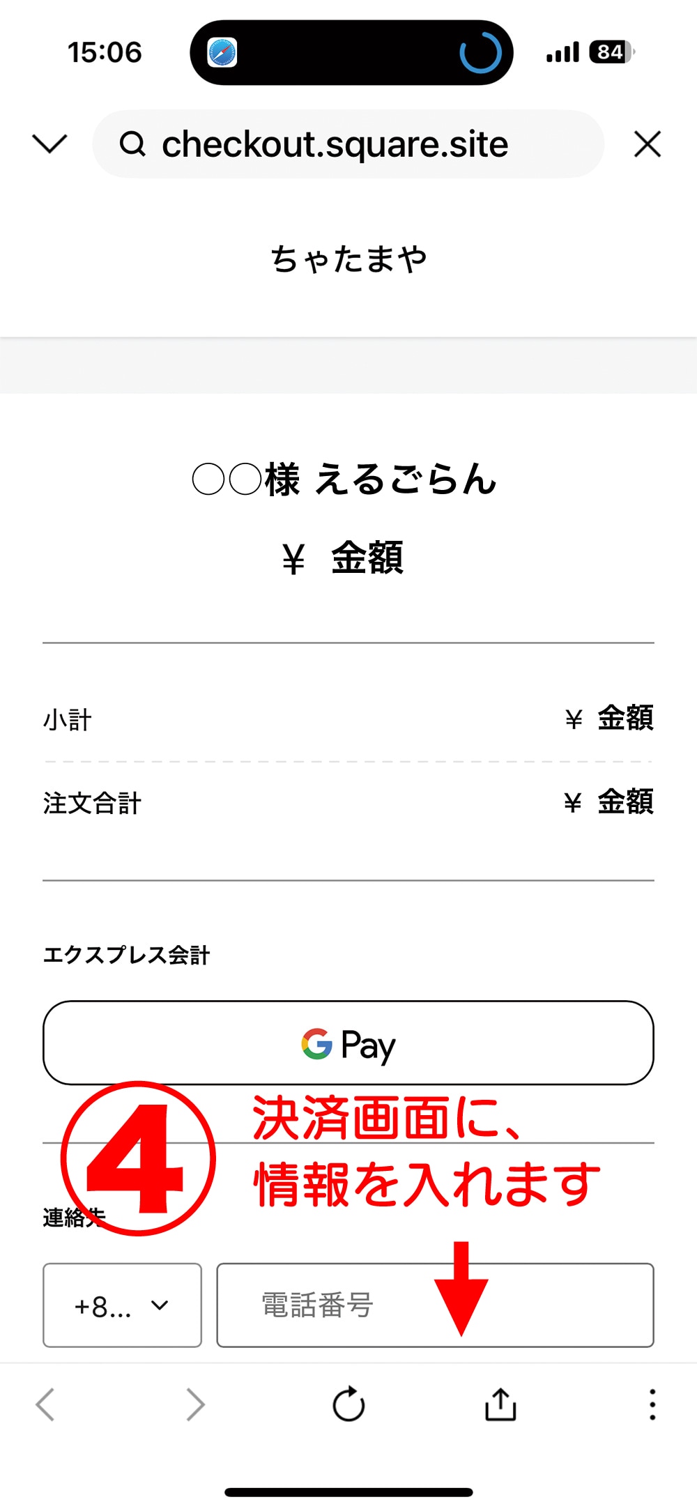 ⬇️リンク決済画面で、クレジットカードで支払いを行っていただきます。