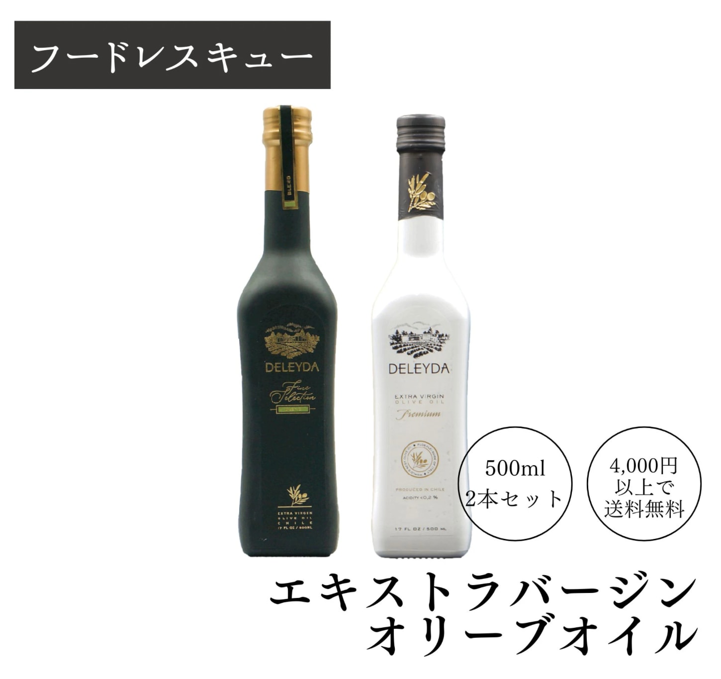 【フードレスキュー!!】2本入「DELEYDA Premium / Fine selection エクストラバージンオリーブオイル(500ml)」チリ産byふくのたね.