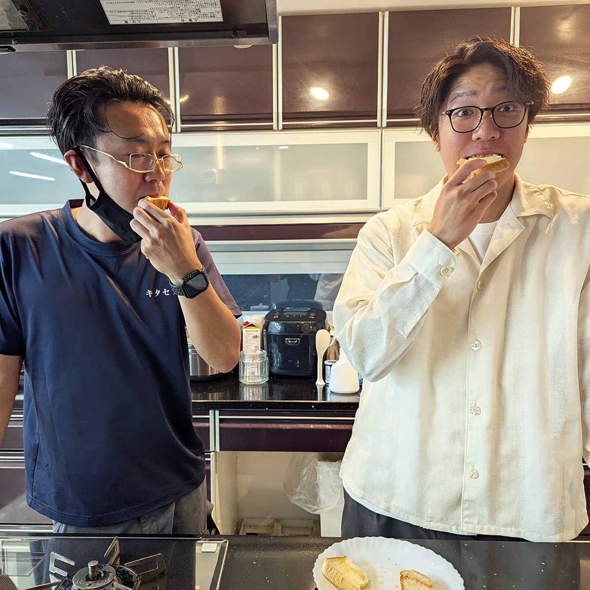 そこに内装担当・橋本がやってきて「あ、良いタイミングで通りかかっちゃいました?ではおひとついただきまーす」