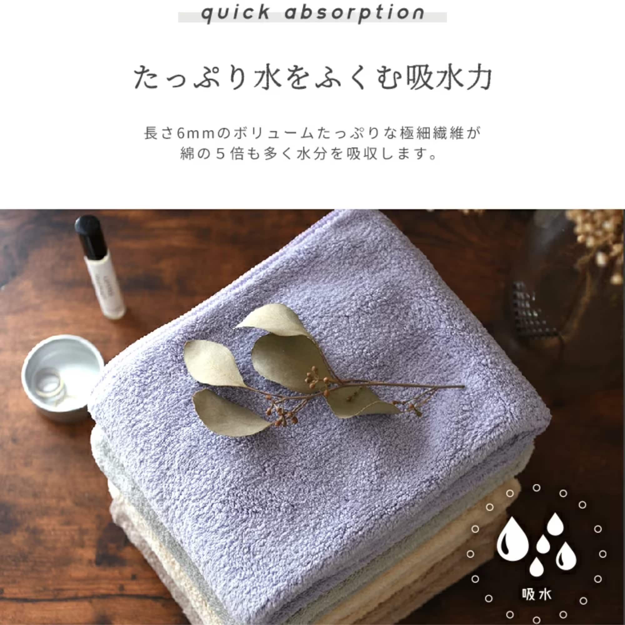 吸水率はなんと綿の5倍❗️カットパイルの柔らかな素材は髪や肌への負担が少なくふんわりとなめらかな肌触り🙆♀️