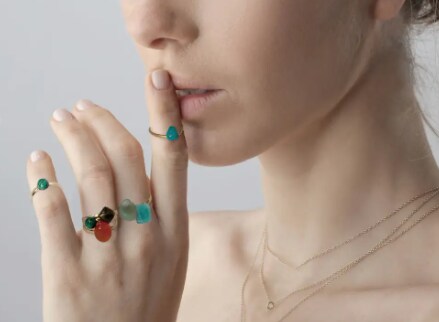 本物の鉱物を使用し、まるで標本のような美しさが特徴のリング。