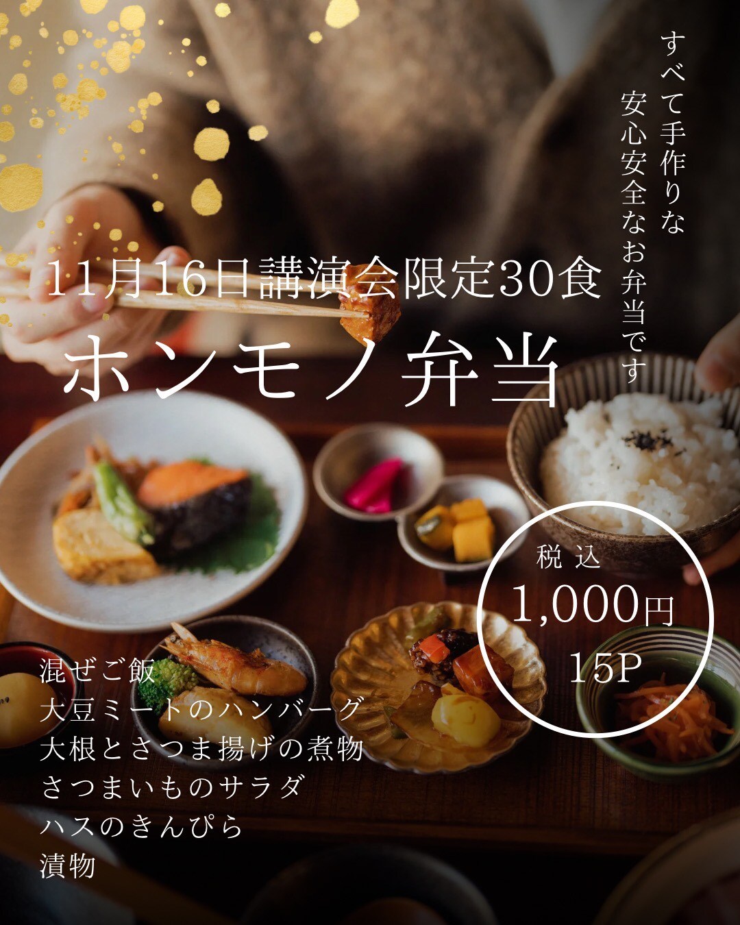 想いのこもった手作りのホンモノ弁当、限定30食となりますので、ご予約はお早めに♪