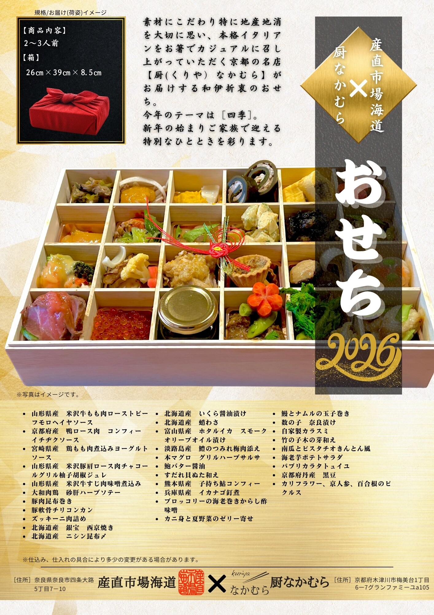 今年も京都の名店「厨なかむら」とのコラボでお届けいたします。