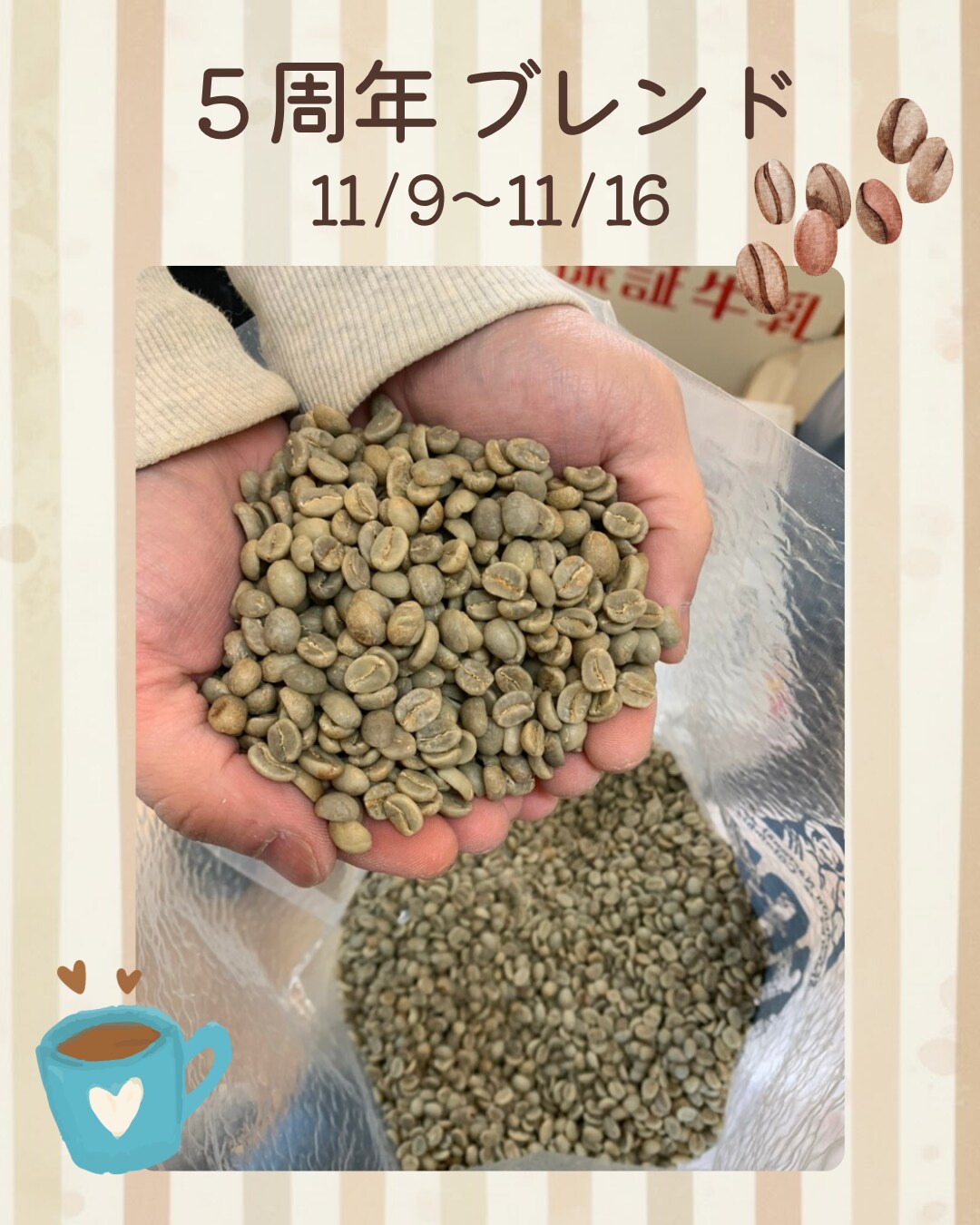 11月9日(日)〜16日(日)の期間中、5周年の気持ちを込めて作った特別な「5周年ブレンド」をプレゼントします。