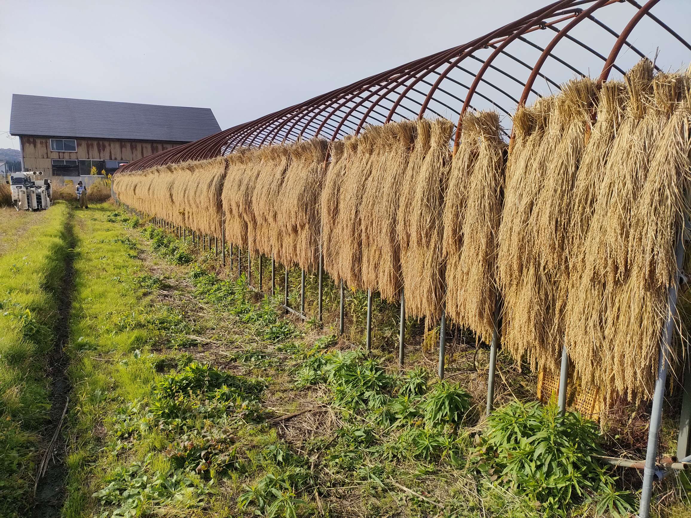 天日乾燥していた稲を脱穀しました!