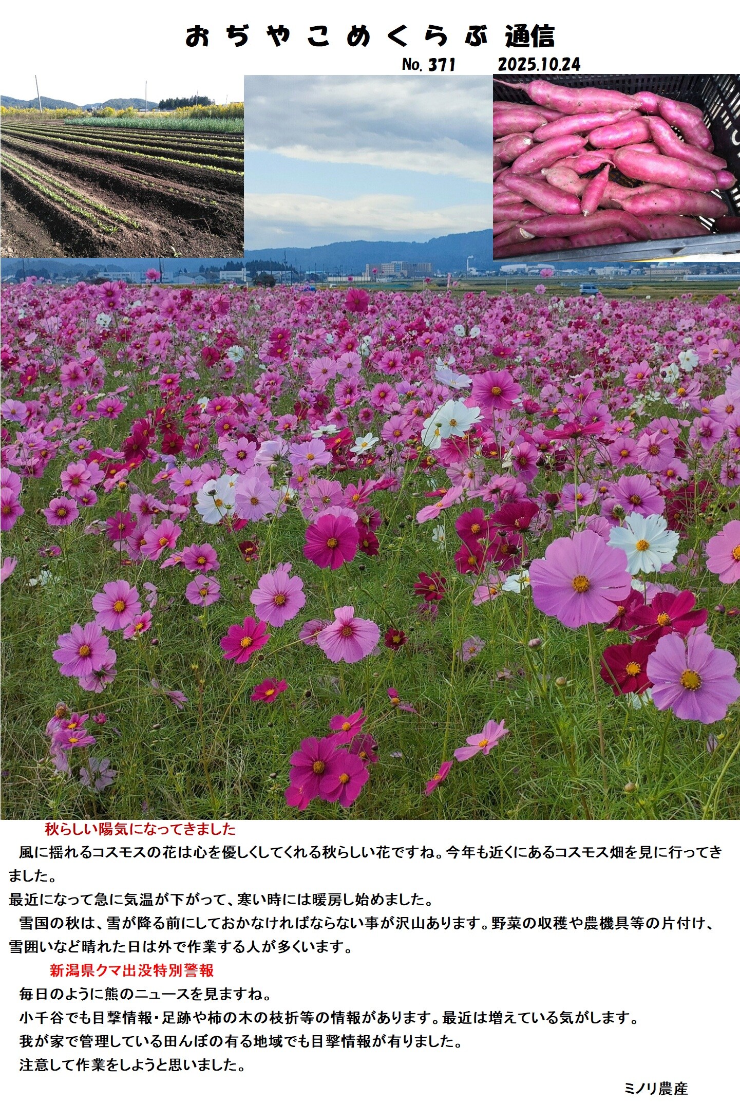 【おぢやこめくらぶ通信No.371/2025.10月号】