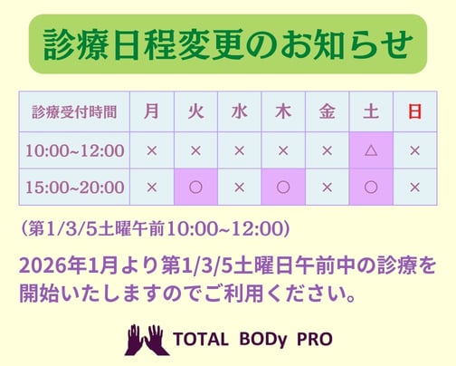 2026年1月より第1/3/5土曜日午前10:00〜12:00までの診療を開始いたしますのでご利用ください。